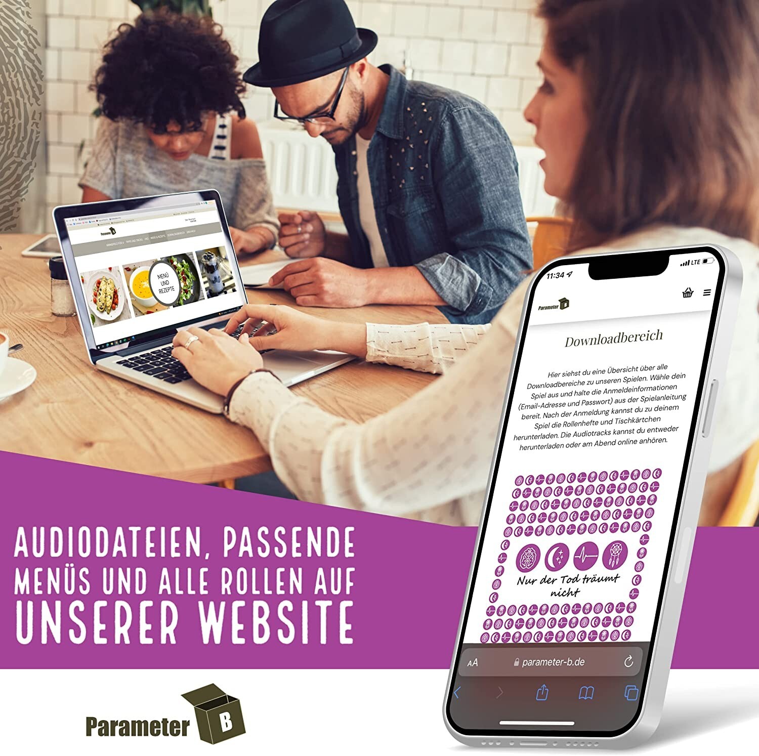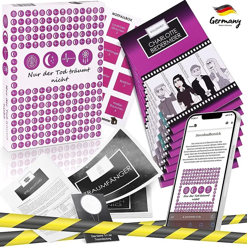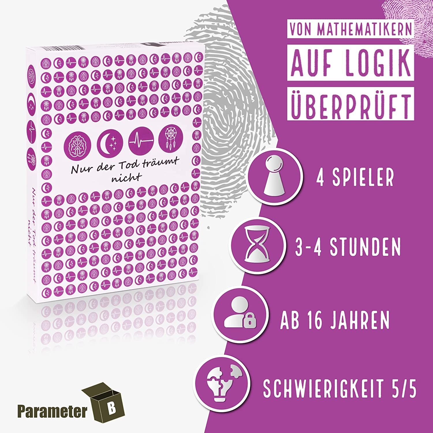 Krimi-Dinner Spiel für Zuhause für 4 Spieler - Nur der Tod träumt nicht. Schweißgebadet erwachst du, denn du wurdest unsanft geweckt. Du bist Teilnehmer eines Experiments über Träume bei Prof. Dromen. Gestern Abend bist du zusammen mit anderen Probanden unter ...