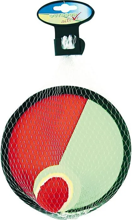 Outdoor active Catchballspiel mit Klett. Bestehend aus 2 Fangscheiben mit Klettbeschichtung und 1 Ball. Maße: 18,5x1,5cm. Für Kinder ab 5 Jahren.