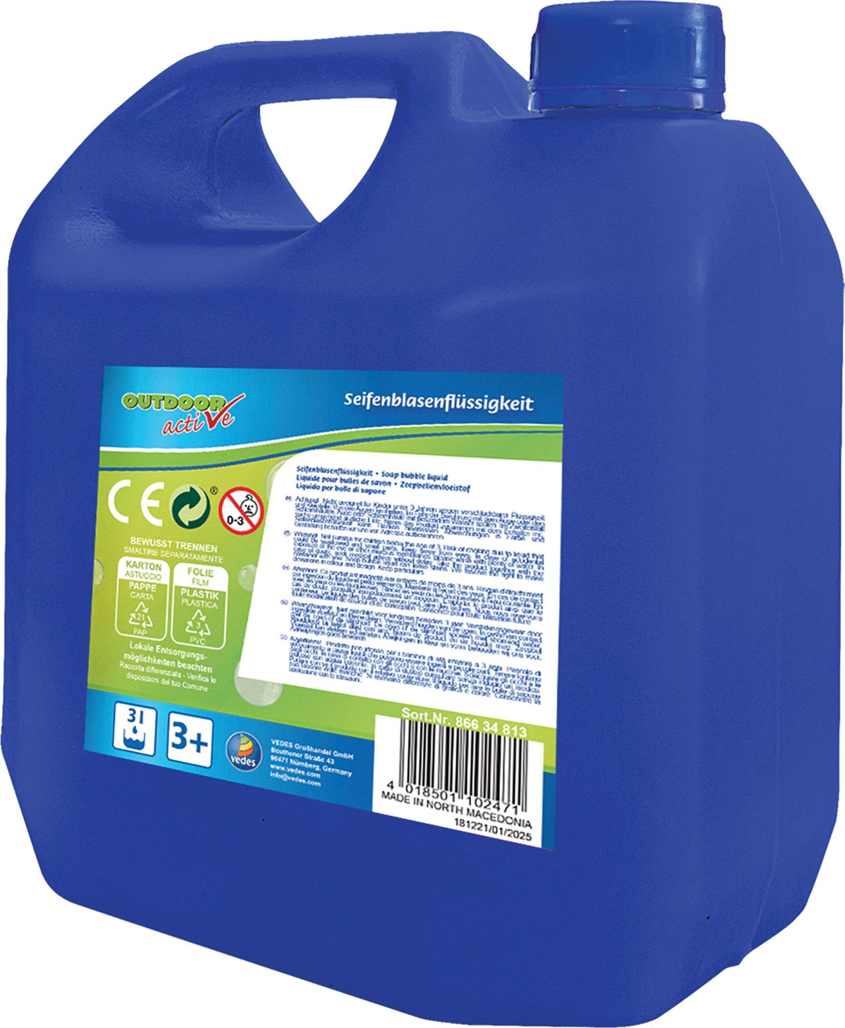 Outdoor active Seifenblasenflüssigkeit in einem 3 Liter Kanister. Für Kinder ab 3 Jahren.