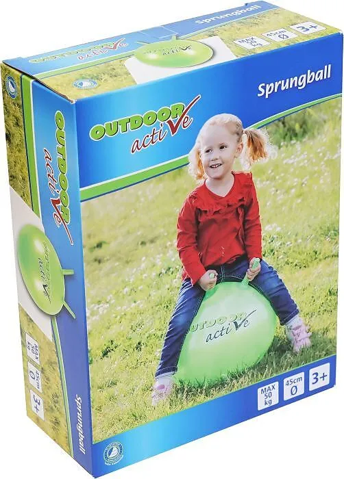 Outdoor active Sprungball in der Farbe Grün. Durchmesser ca. 45 cm. Maximale Belastbarkeit ca. 50 kg. Für Kinder ab 3 Jahren.