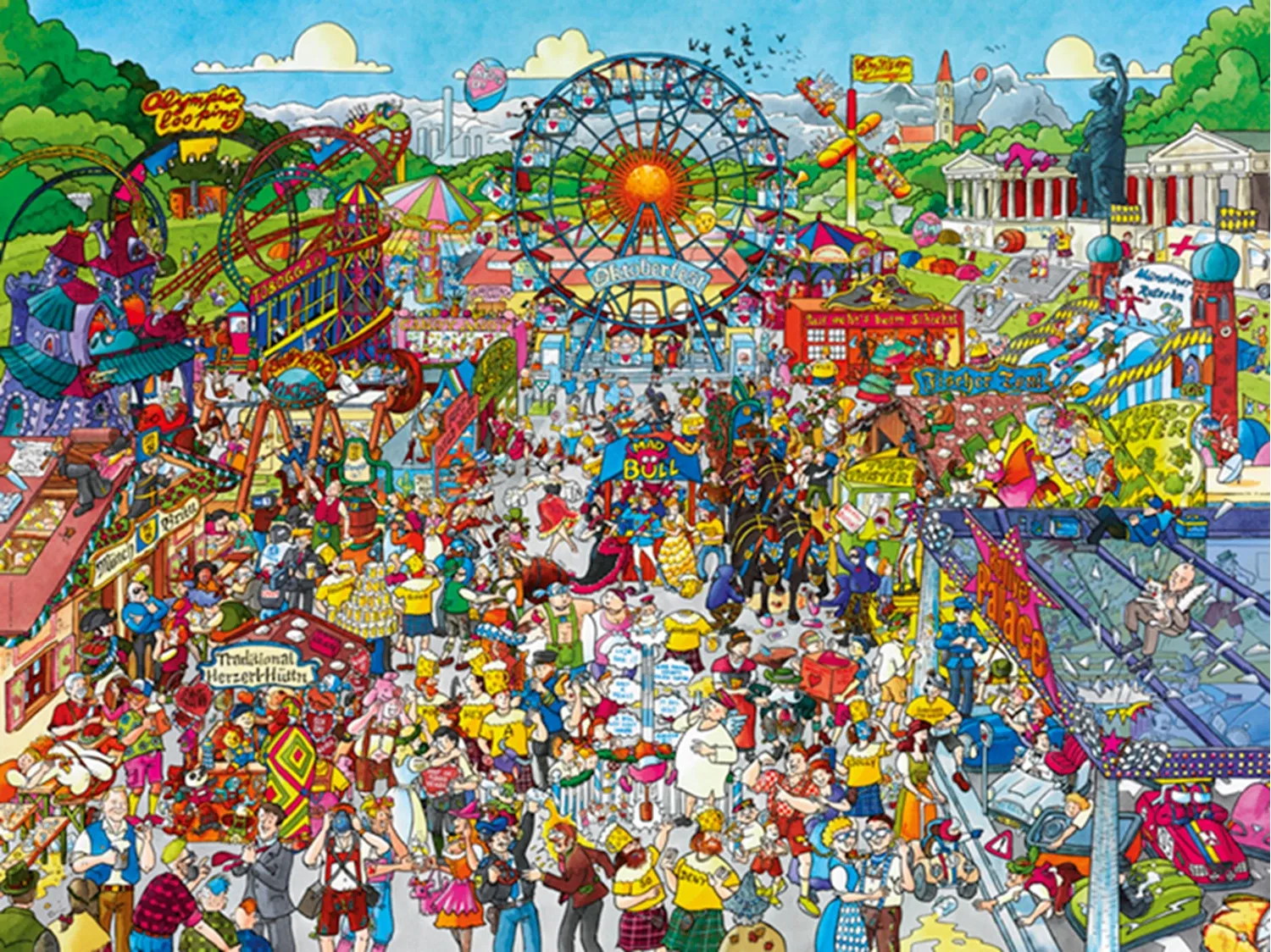 In diesem monumentalen Oktoberfest steckt wirklich alles drin, was dazugehört, aus dem Gestern, Heute und Morgen des Traditionsereignisses. Oans, zwoa, g'suffa! Gelegte Größe: 80x60cm.