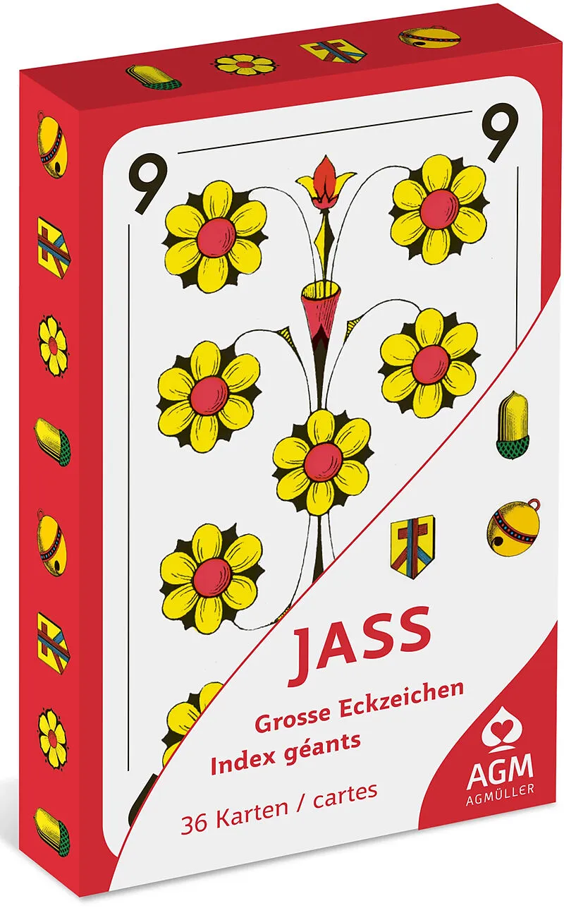 Die OPTI Jasskarten haben eine vergrösserte Schrift um Bezeichnungen besonders lesbar zu machen.
