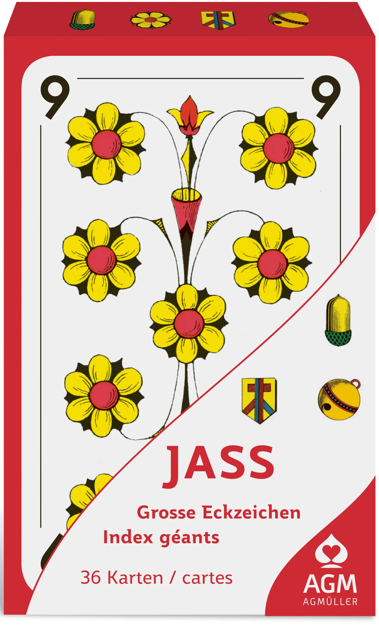 Die OPTI Jasskarten haben eine vergrösserte Schrift um Bezeichnungen besonders lesbar zu machen.