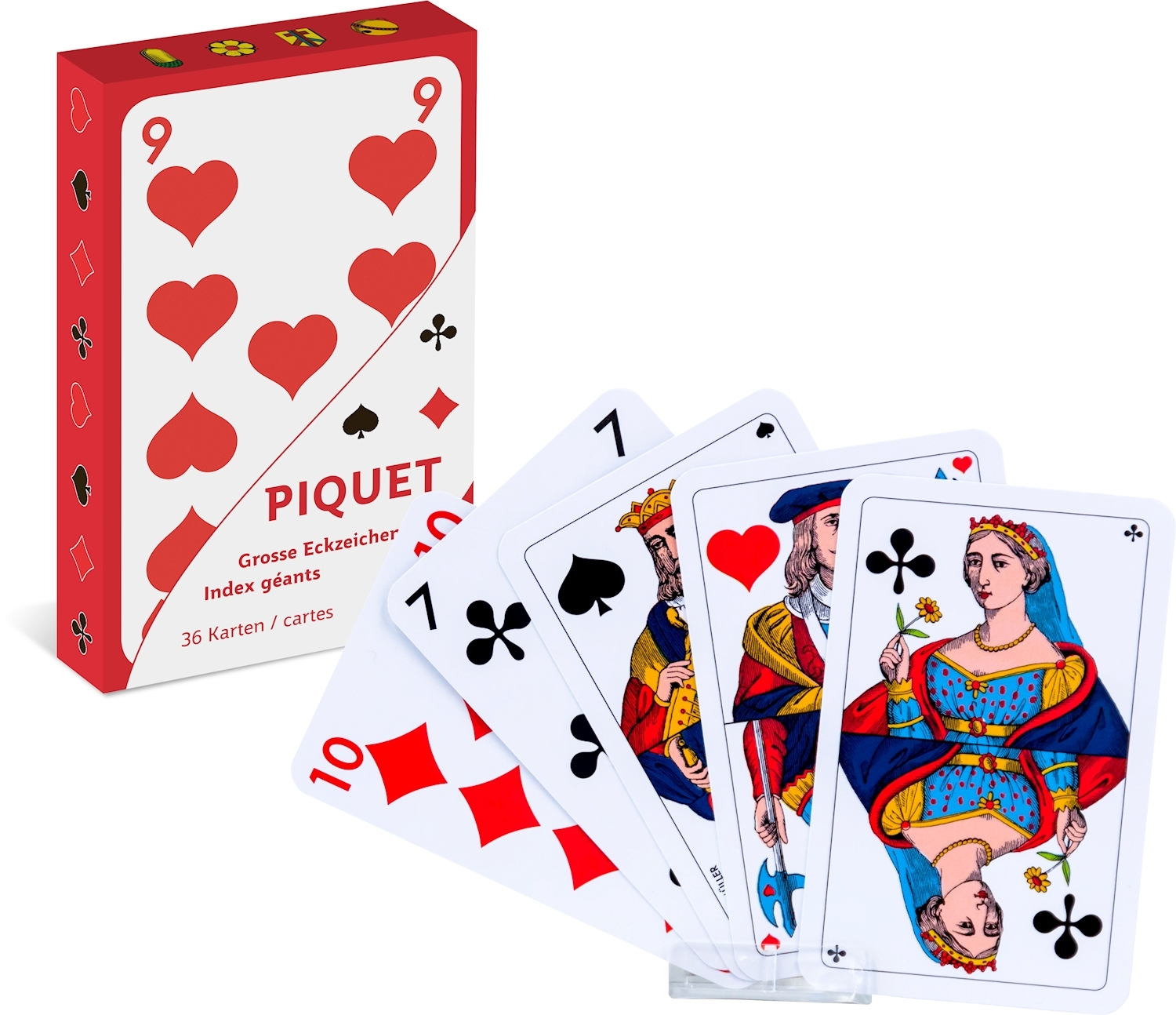 Die OPTI Jasskarten haben eine vergrösserte Schrift um Bezeichnungen besonders lesbar zu machen.
