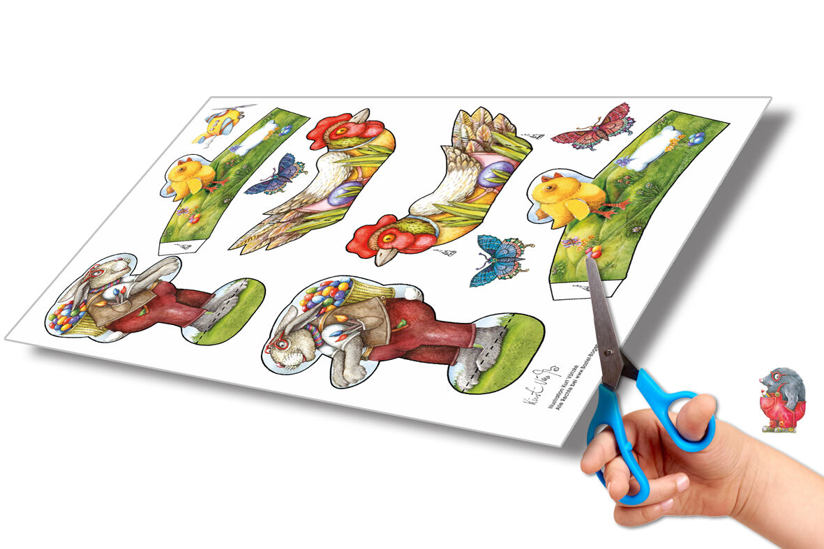 Bastelbogen Ostern mit 4 Osterkörbchen und 9 Eierbecher mit Namensfeld für den OstertischAusschneiden und Zusammenkleben fertig ist die Osterdekoration. Die beliebten und bekannten Osterkörbchen und Eierbecher sind einfach zum Basteln und auch für kleinere Kin...