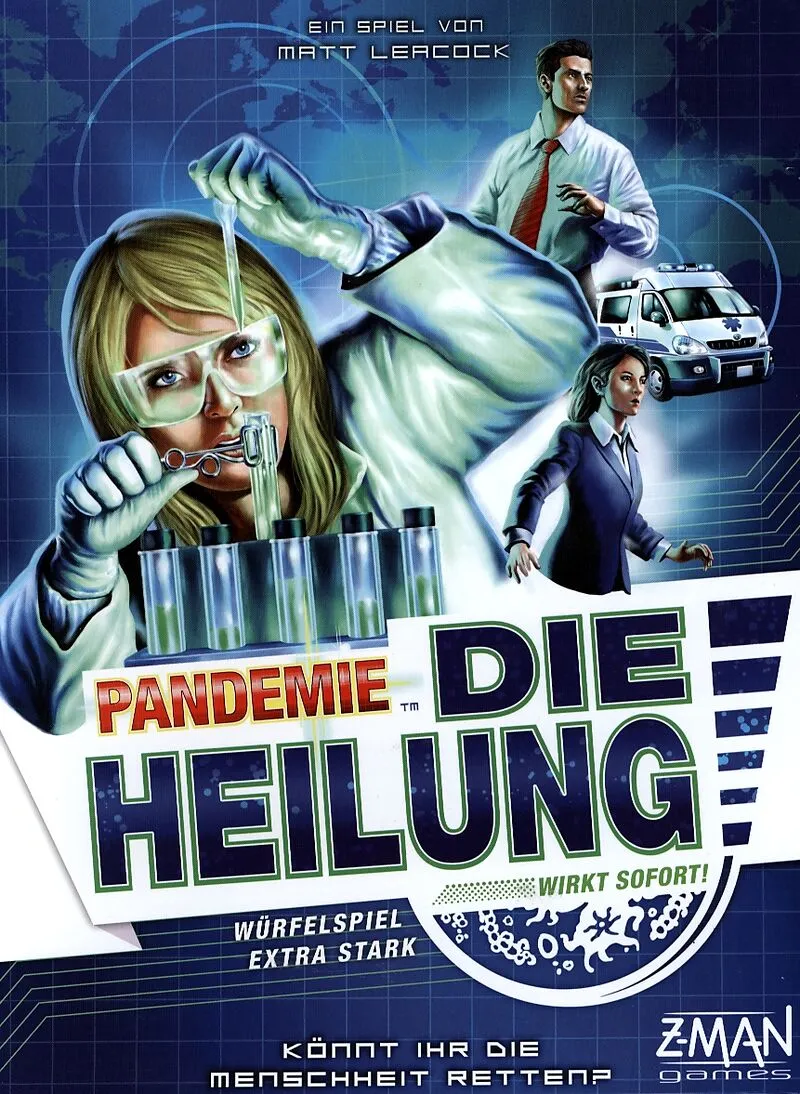 Pandemie Die Heilung ist das schnelle, kooperative Würfelspiel rund um die Rettung der Welt. Wie im Brettspiel Pandemie bedrohen vier Krankheiten die Menschheit und die Spieler versuchen Heilmittel zu finden, bevor die Erreger unaufhaltsam werden. Sieben spezi...