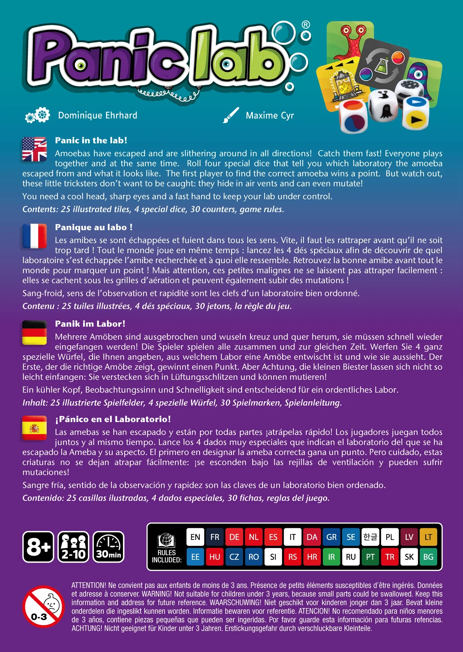 Panik im Labor! Merkwürdige Amöben sind aus dem Labor entwischt: Kannst du sie wieder einfangen? Mithilfe der Spezialwürfel und deines logischen Denkens kannst du die richtige Amöbe vor deinen Gegnern bestimmen und einen Chip gewinnen. Aber Vorsicht, denn Amöb...