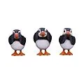 lustiges Set aus drei Papageientaucher-Figuren In den bekannten Posen "Nichts sehen, nichts hören, nichts sagen" Aus hochwertigem Kunstharz gegossen handbemalt Größe: 9cm. Hinweis: Dieses Produkt ist handbemalt. Daher kann es zu leichten Abweichungen kommen....