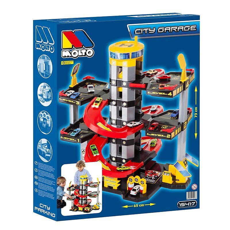 Phantastische Kindergarage auf 5 Stockwerken mit hohem Spielwert. Solide Konstruktion inklusive stabiler Grundplatte. Einfach zusammenbauen. Inhalt: Handaufzug, Waschanlage, Hebebühne, Zapfsäulen und weiteres Zubehör.
