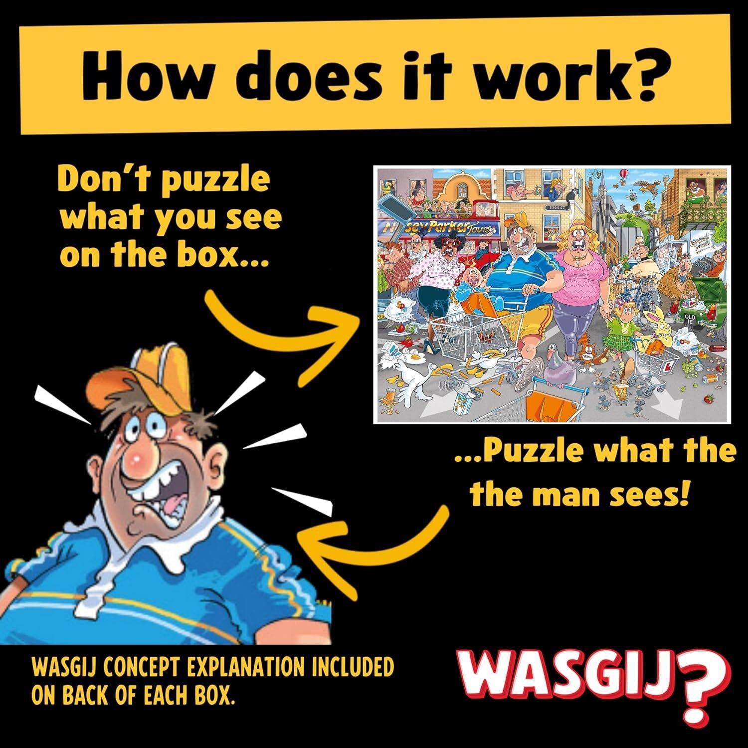 Puzzlemaße: 68 x 49 cm Inhalt: 1x Puzzle, 1x Lösungshinweis Jeder macht gerne ein Schnäppchen, aber manchmal hat man letztendlich mehr gekauft als geplant. Ein Einkaufstrip für einige lebensnotwendige Dinge wird beim Streifzug durch das Warenhaus schnell zum K...