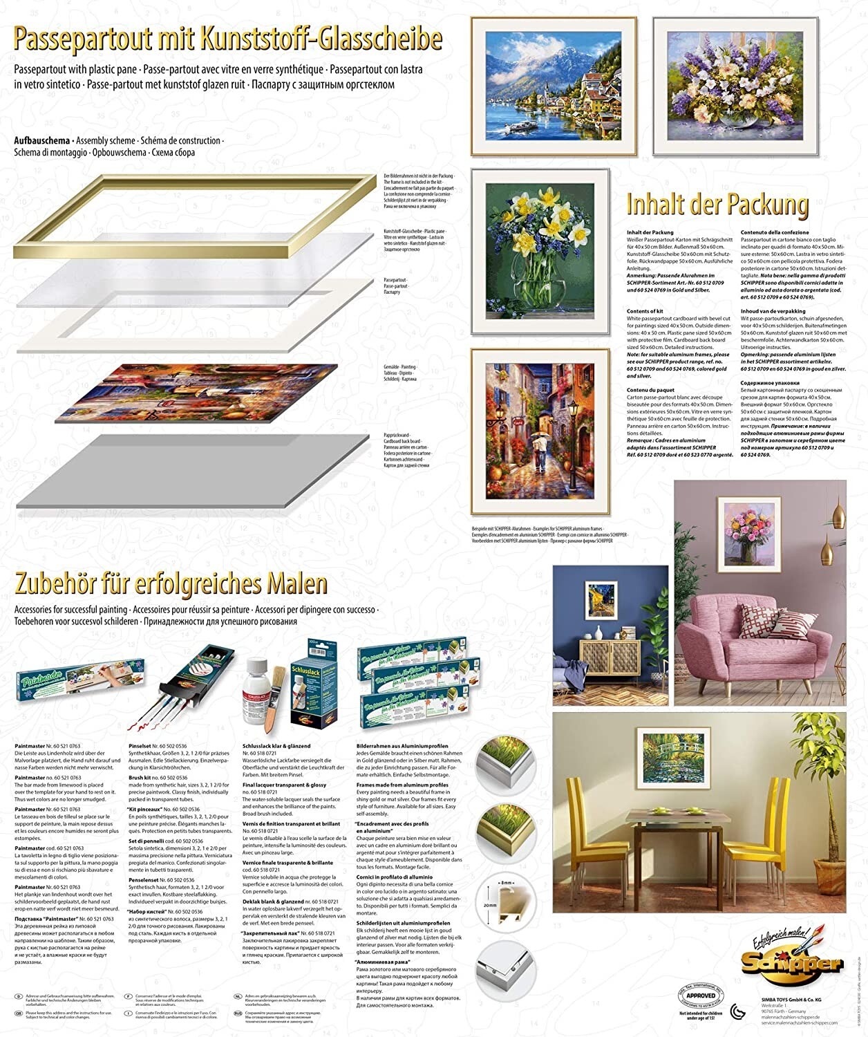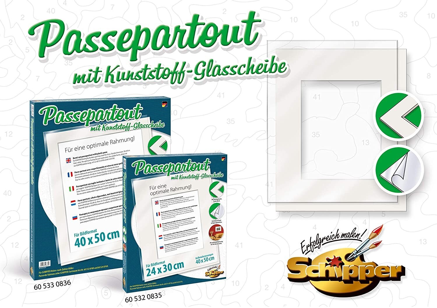 Vollständiges Set - Der Lieferumfang beinhaltet das Passepartout im Format 40 x 50 cm, eine Kunststoff-Glasscheibe mit Schutzfolie sowie eine Rückwandpappe im Format 50 x 60cm und eine ausführliche Anleitung. - Kunstwerk Für die optimale Rahmung mit Schrägschn...