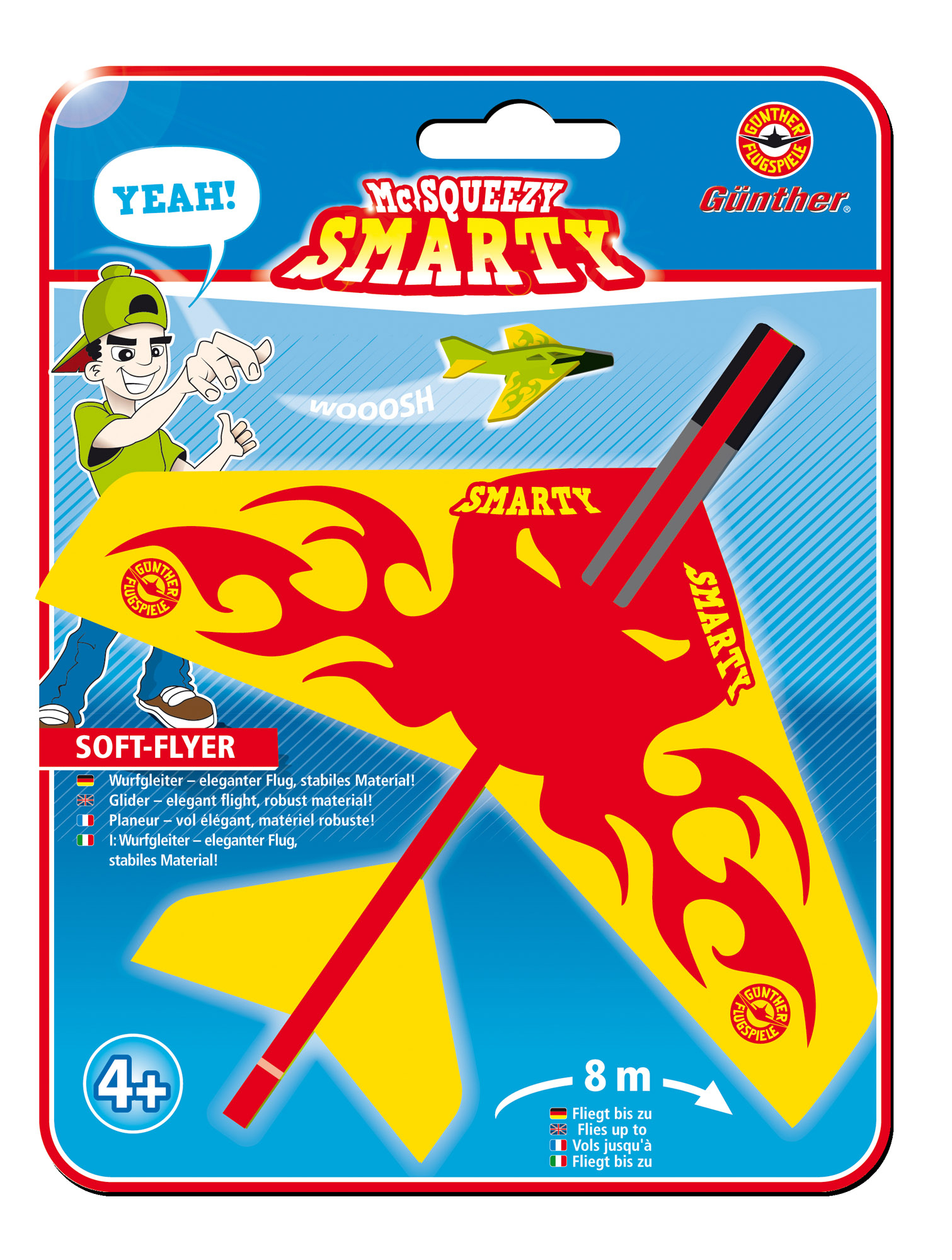 Der Wurfgleiter Mc Squeezy SMARTY aus weichem EVA-Material fliegt elegant bis zu 8 m weit.