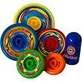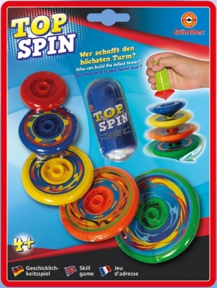 Geschicklichkeitsspiel mit 5 Kreiseln und einem mechanischen Starter (keine Batterien benötigt)Größe: 4-8 cm