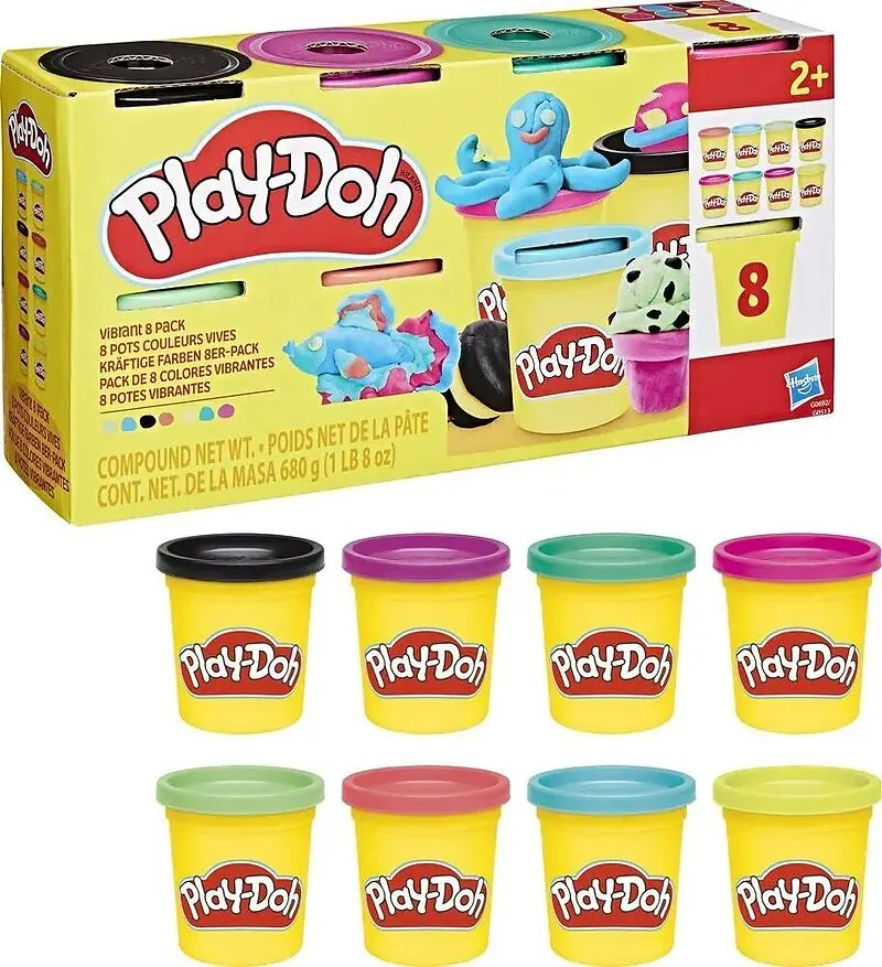 PD kräftige Farben 8er-Pack Mit dem Play-Doh kräftige Farben 8er-Pack können die Ideen der Kids Gestalt annehmen! Das Play-Doh Set ist wunderbar für allerlei verschiedene kreative Aktivitäten für Kinder ab 2 Jahren. Mit 8 Farben in Dosen # 85 g können Kinder i...