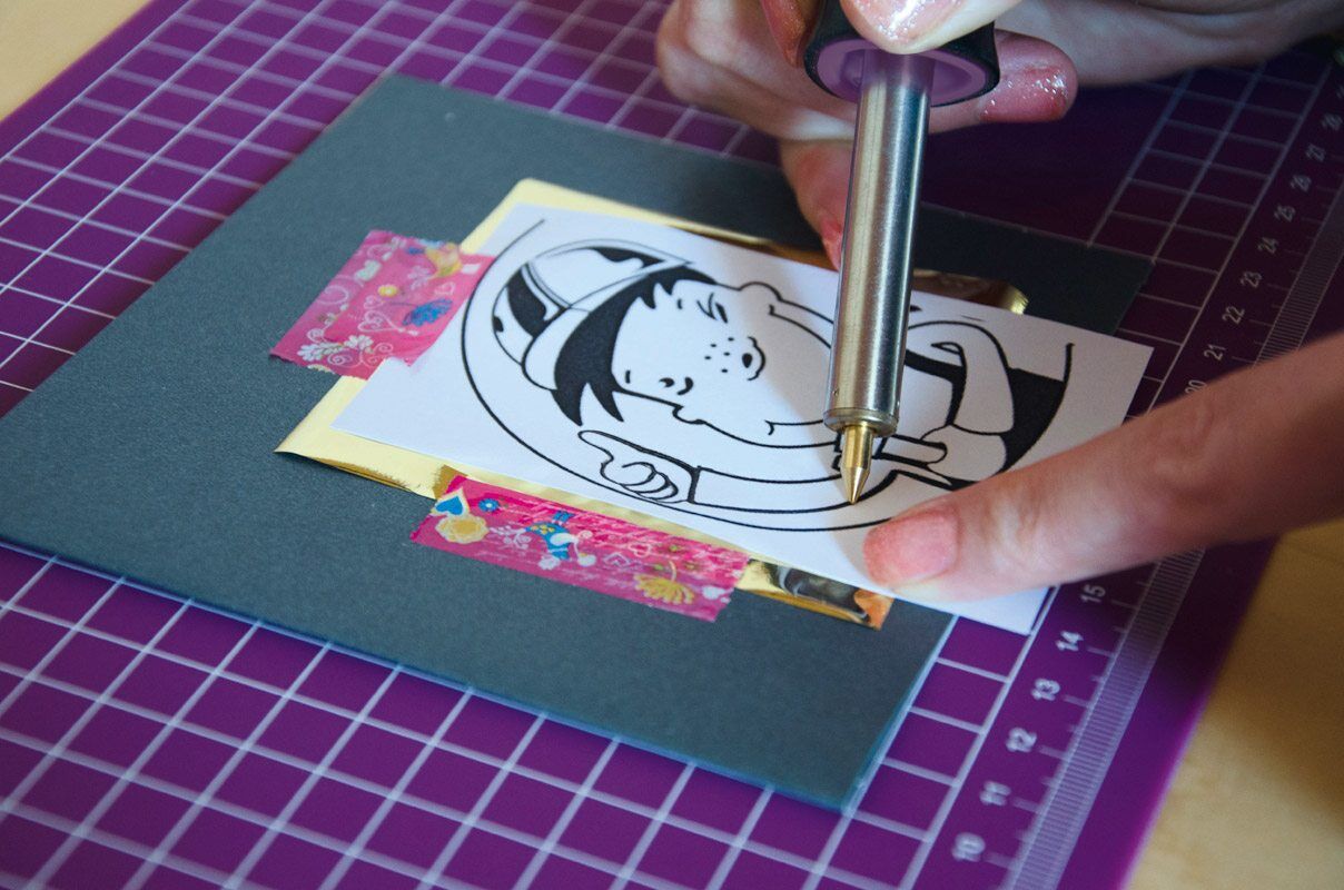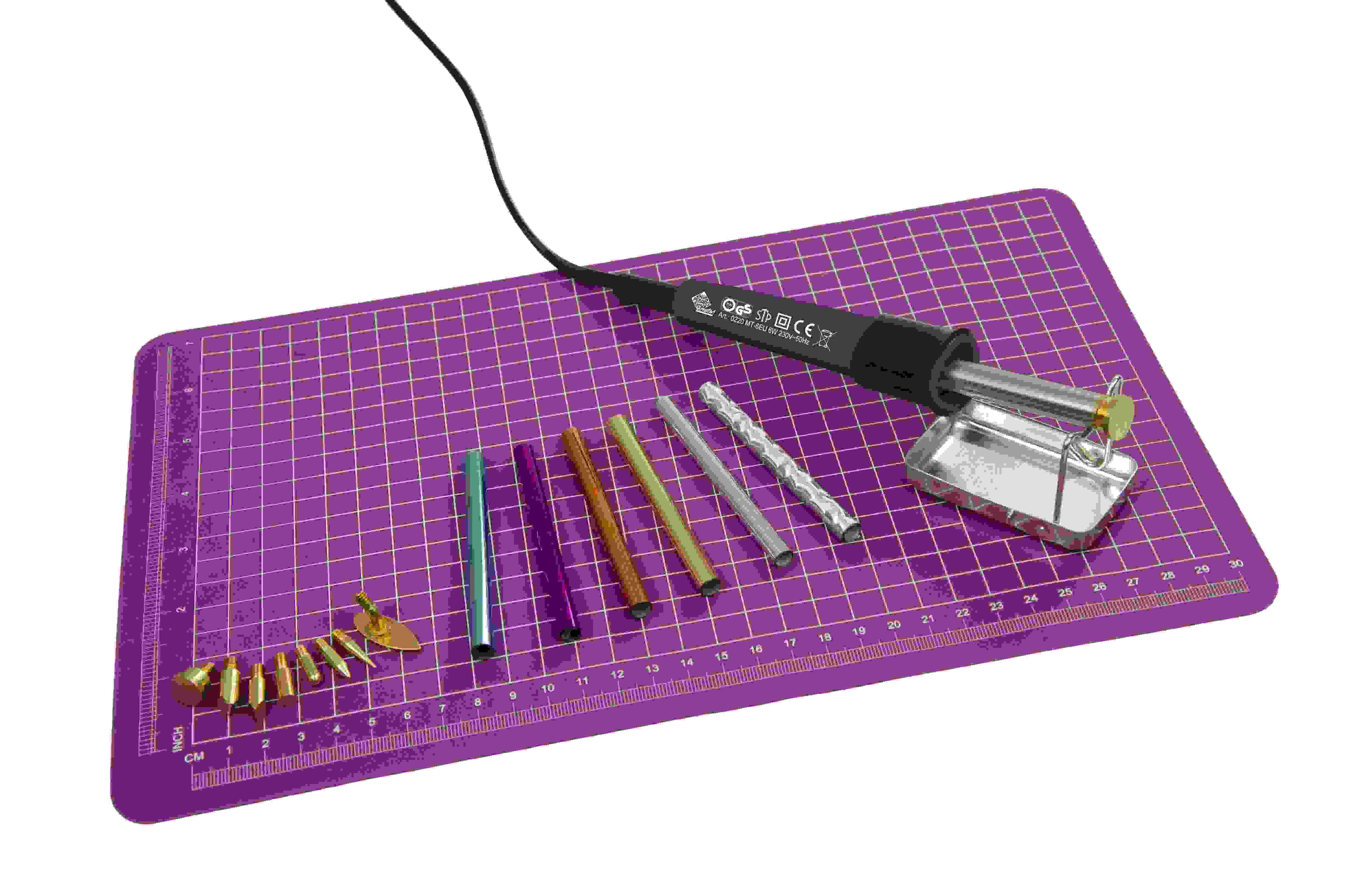 Heissfolien Präge-Set. Das Heißfolien Präge-Set bietet viele kreative Gestaltungsmöglichkeiten und einzigartige Geschenkideen durch hoch-tief Präge-Ergebnisse auf den unterschiedlichsten Materialien! Inhalt: - Prägekolben - Auflageböckchen mit Ablage - 10 Aufs...