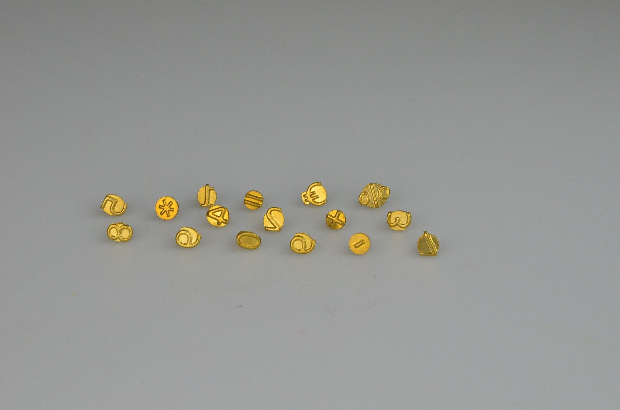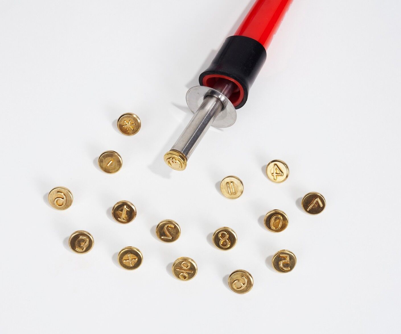 16 Brennstempel passend für den Pebaro-Brandmalkolben mit Gewinde zum Einschrauben.Inhalt: Zahlen 09Zeichen % + -