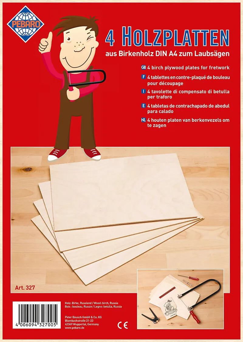 4 Sperrholzplatten aus Birkenholz.Für Laubsägearbeiten geeignet. Der Kreativität sind keine Grenzen gesetzt!