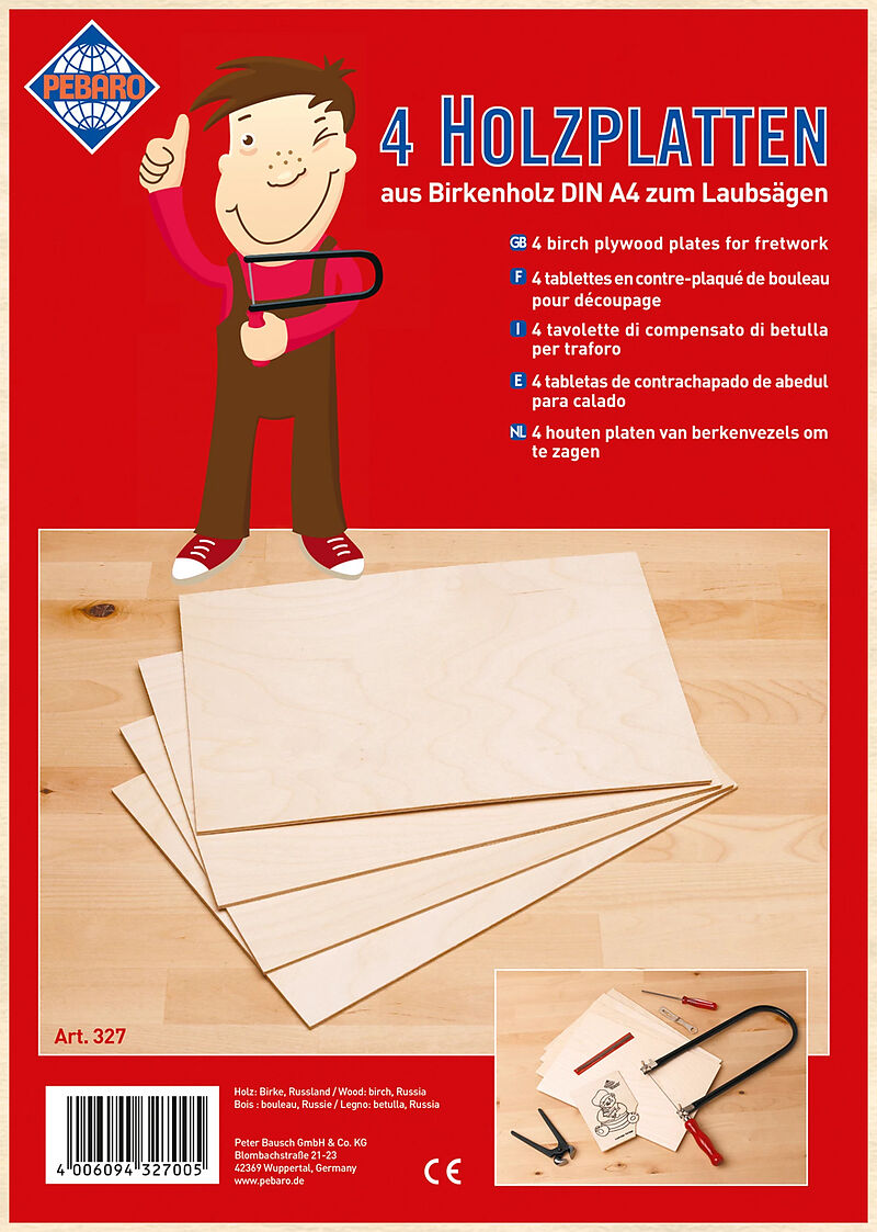 4 Sperrholzplatten aus Birkenholz.Für Laubsägearbeiten geeignet. Der Kreativität sind keine Grenzen gesetzt!
