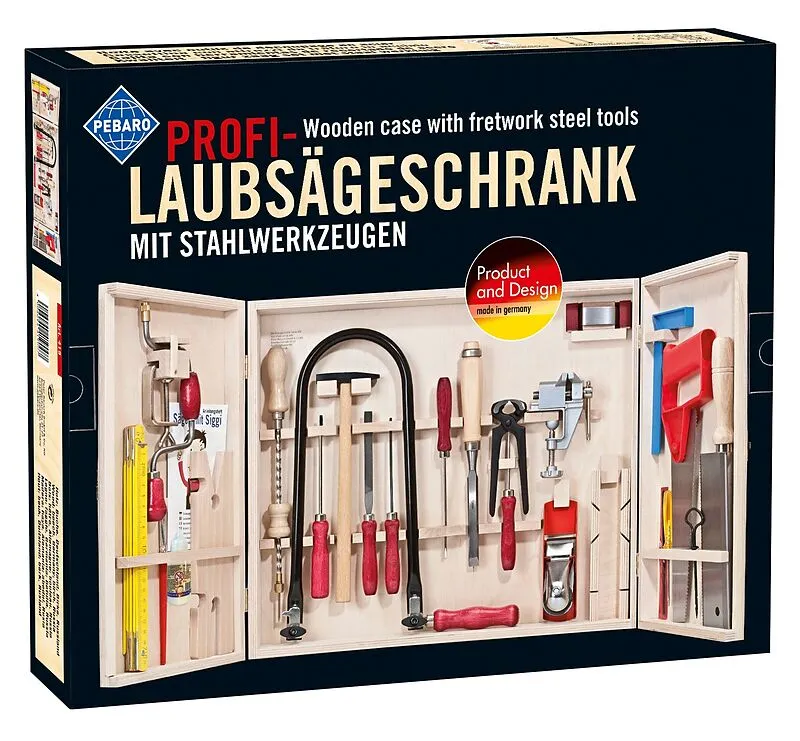 HIGHLIGHT: Hochwertige Laubsäge mit besonders handlichen glasfaserverstärkten Kunststoff-Flügelmuttern für ein einfaches Einspannen des Laubsägeblatts INHALT: Laubsäge mit Nylonkraftschrauben (Art. 750N), Laubsägetischchen mit Einspannhalterung aus Holz, Zwing...