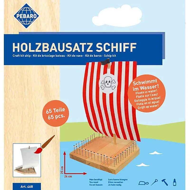 Holzbausatz Schiff zum Selbermachen, samt Anleitung - 1 Holzbrett (15 x 20 cm), 1 Rundstab - 60 Nägel, 1 Stück Perlenkordel - 1 Papiersegel, 1 Stück Schmirgelpapier, Anleitung In seiner fertigen Form ist das Schiff 25 cm hoch und kann sogar richtig auf dem Was...