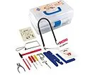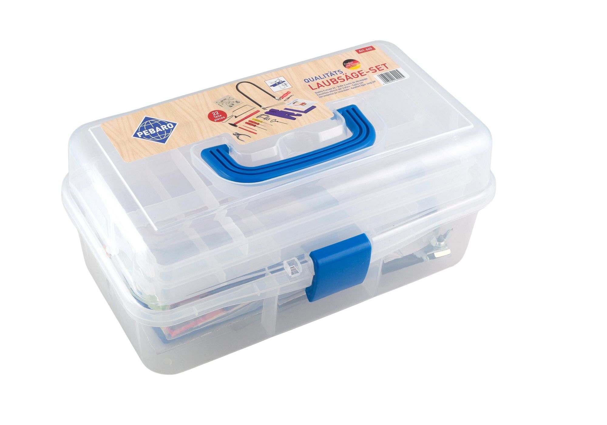 Der bei Kindern sehr beliebte Kunststoffkoffer ist eine tolle Alternative zu den Holzverpackungen! Im Kofferdeckel können noch zusätzlich Kleinigkeiten verstaut werden. Vom Inhalt her ist hier alles dabei, was der kleine Bastler braucht - sogar eine Holzvorlag...