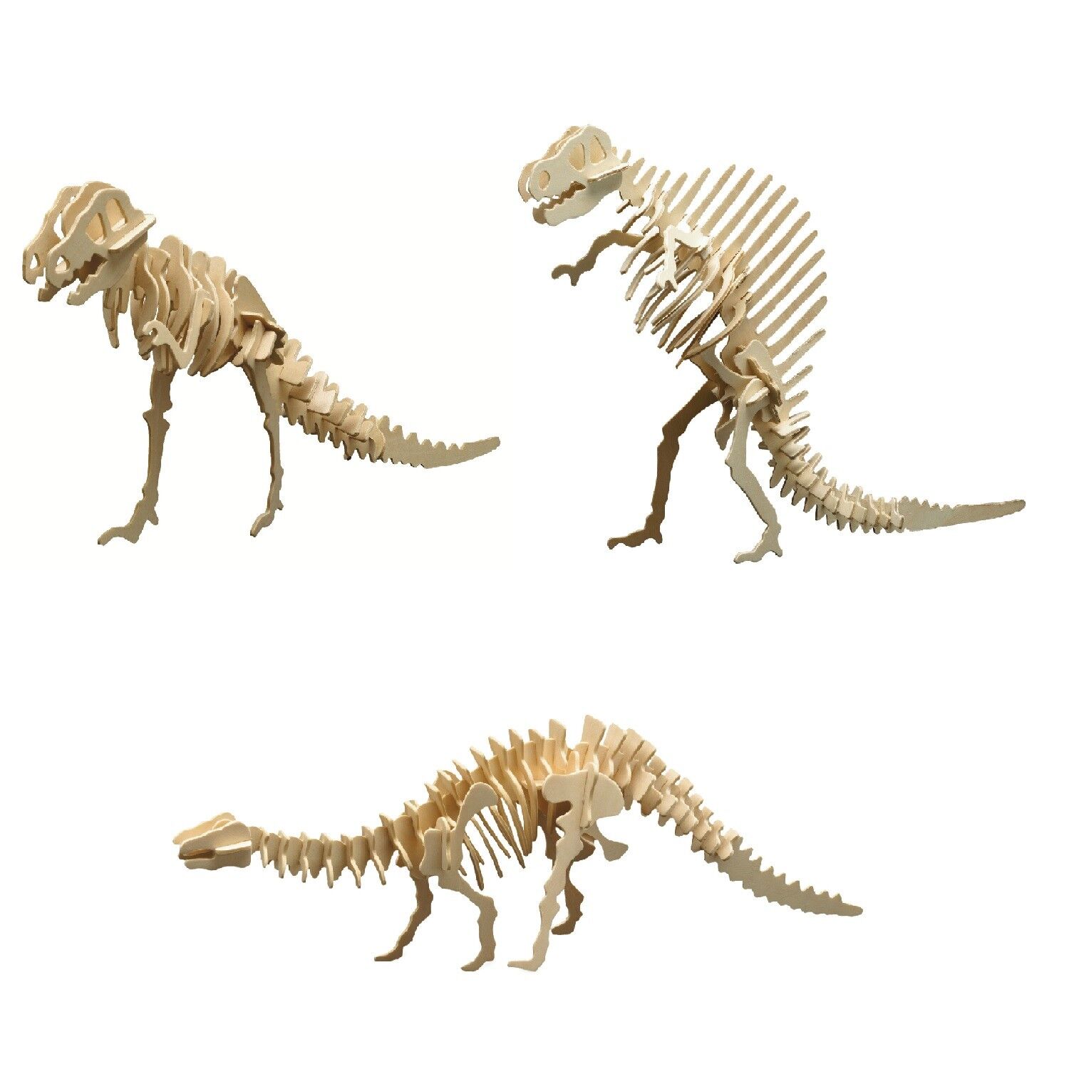 Holzbausatz Dino-Set(856/8, 856/3, 856/7) Kreativer Modellbausatz aus Holz zum Zusammenstecken - Ausbrechen, zusammenstecken, fertig - inklusive Aufbauanleitung - Hilft auch Kindern, die Geschicklichkeit mit den Händen weiterzuentwickeln und ist eine pädagogis...