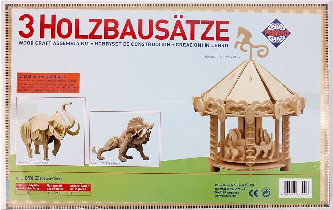 Holzbausatz Zirkus-Set (871/1, 870/2,859/7) Kreativer Modellbausatz aus Holz zum Zusammenstecken - Ausbrechen, zusammenstecken, fertig - inklusive Aufbauanleitung - Hilft auch Kindern, die Geschicklichkeit mit den Händen weiterzuentwickeln und ist eine pädagog...