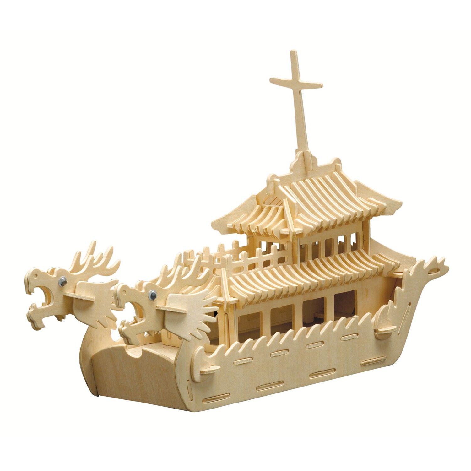 Holzbausatz Drachenboot Kreativer Modellbausatz aus Holz zum Zusammenstecken - Ausbrechen, zusammenstecken, fertig - inklusive Aufbauanleitung - Hilft auch Kindern, die Geschicklichkeit mit den Händen weiterzuentwickeln und ist eine pädagogisch wertvolle Gesch...