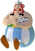 Ein schönen Eyecatcher für jeden Asterix und Obelix-Fan. Hier: Obelix mit Idefix als detailliert modellierte Spardose. Ca. 24 cm. Unterseite mit Gummistoppel. Material: Kunststoff Format: ca. 17 x 16 x 17 cm