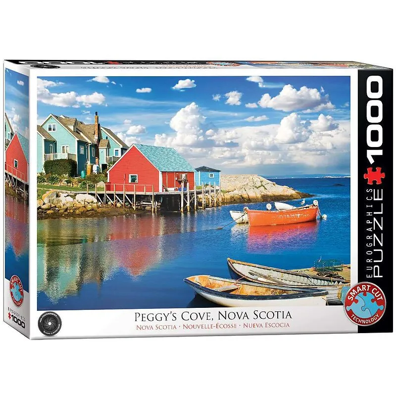Fischerhütten in Peggys Cove Nova Scotia Smart-Cut Technology ist ein innovativer Herstellungsprozess, der das Stanzen von einzigartigen Puzzleteilformen mit perfekter Passgenauigkeit erlaubt. Wie bei Schneeflocken gibt es keine zwei Stücke, die gleich sind. I...