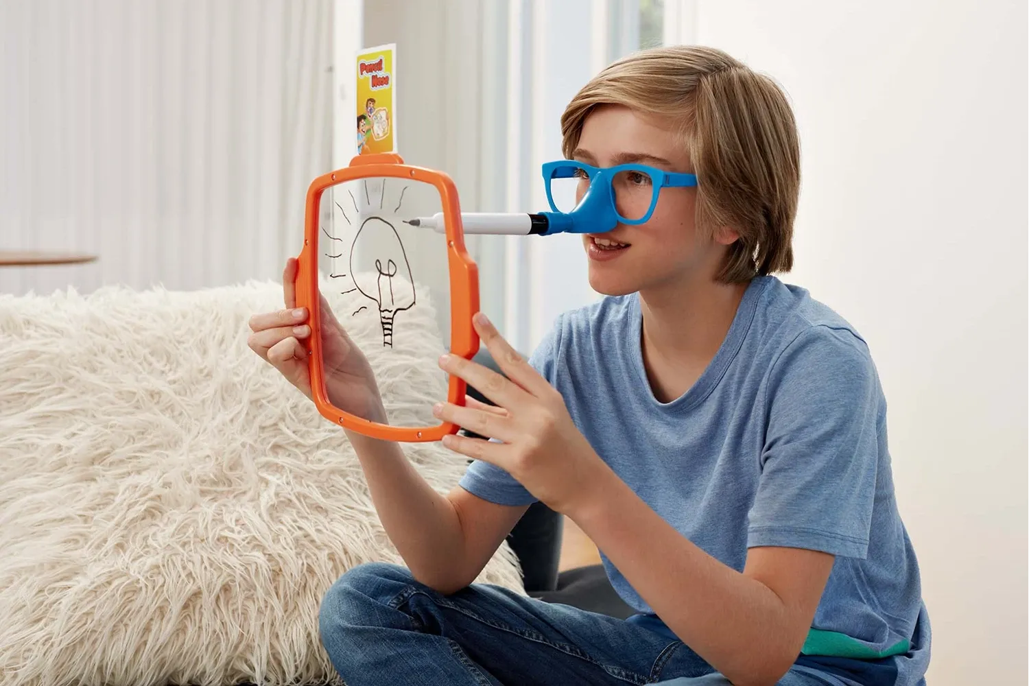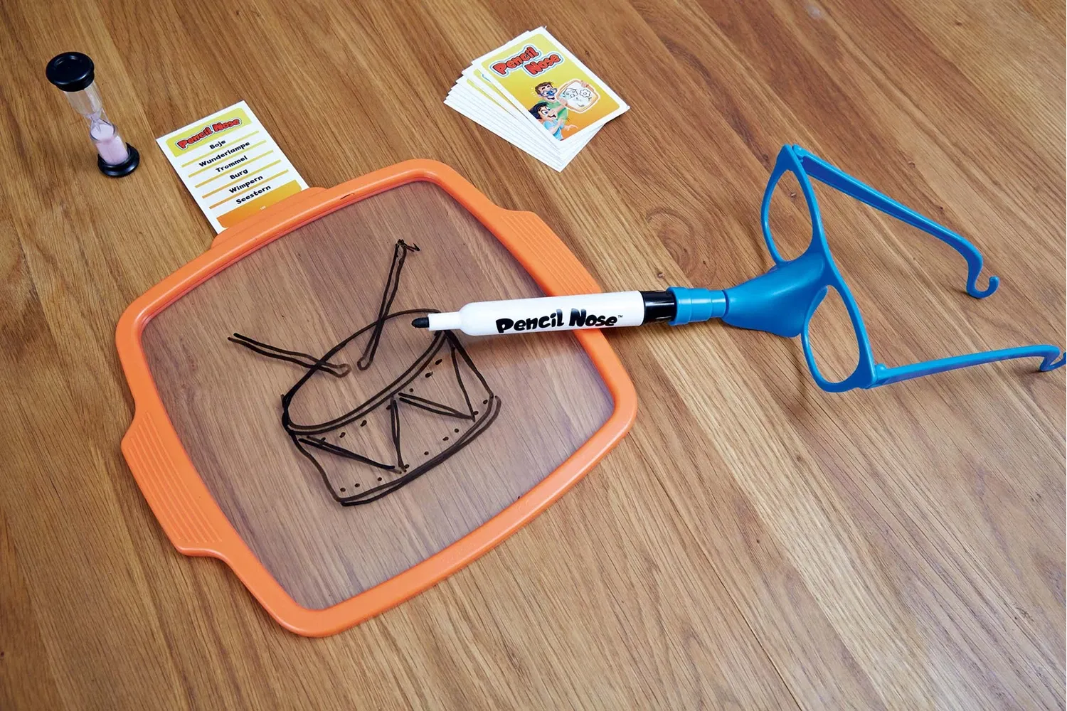 Brille auf und los geht's! Nur mit einer verlängerten Nase sollen so viele Begriffe wie möglich auf einem transparenten Zeichenbrett so gezeichnet werden, dass sie von den eigenen Teammitgliedern auch wiedererkannt und erraten werden können. Und das, bevor die...