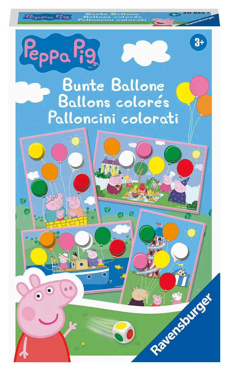 Bei diesem Farbwürfelspiel versuchen die Kinder zuerst die 6 bunten Ballone auf ihrer Legetafel zu sammeln. Dazu würfeln sie und erhalten den farbgleichen Ballon-Chip. Spannend wird es, wenn ein Spieler eine Farbe doppelt würfelt: Wer dann als Erster grunzt wi...