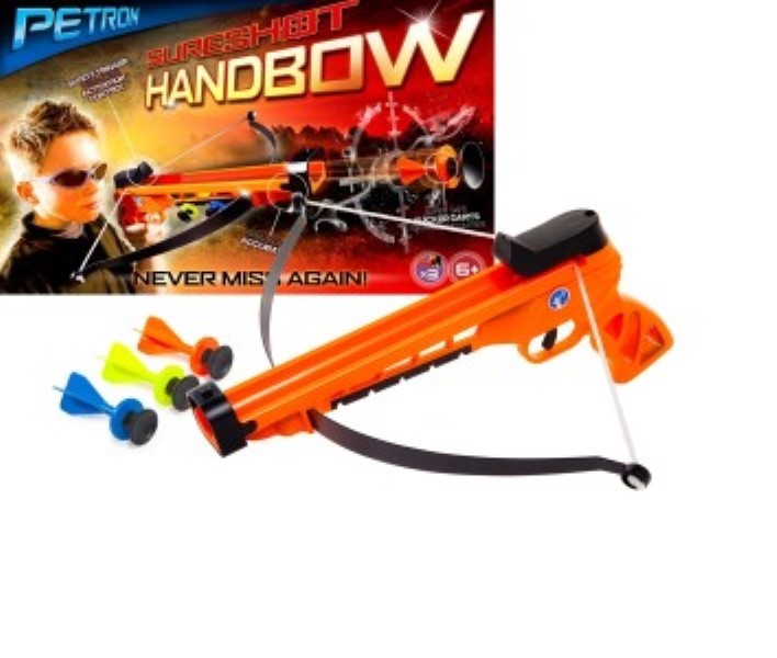 Kleine Armbrust, orange. Ein toller Zielspaß inkl. 3 Dart-Pfeile. Die Petron Sureshot Handbow ist der "Pistolengriff" Version der Sureshot Armbrust.- Sie sieht aus und fühlt sich an wie eine echte Handbow, aber schießt zielgenaue Sauger Darts. - Ideal für die ...