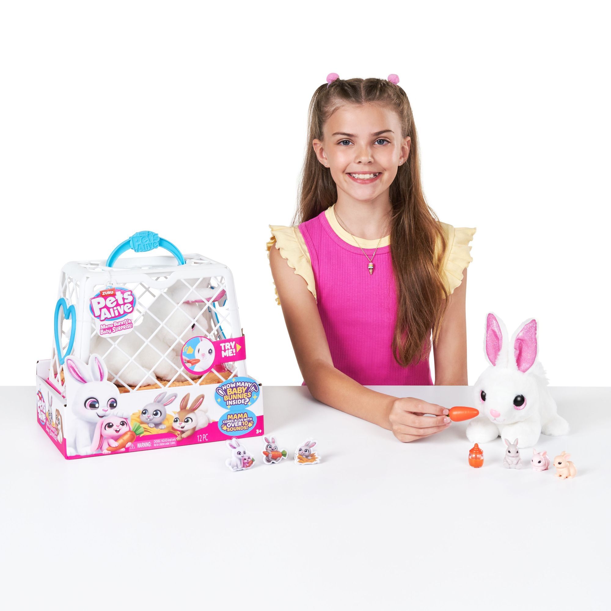 Pets Alive - Mama & Baby Surprise Bunny Playset S1 Mit Mama Bunny & Baby Surprise wirst du viele Überraschungen erleben! Die Schlappohren, der flauschige Schwanz und die versteckten Überraschungen lassen Mama Bunny mit über 10 Geräuschen richtig lebendig wirke...