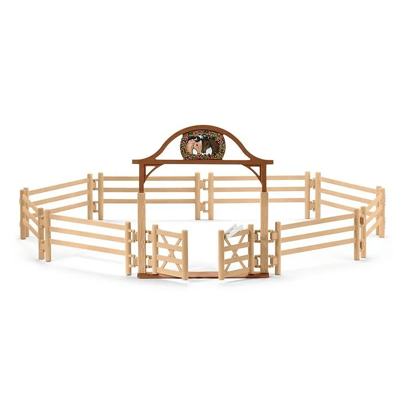 schleich® Horse Club 42434 Pferdekoppel mit Eingangstor Wann immer neue Pferde oder Ponys in Lakeside eintreffen, werden sie zuerst auf die Pferdekoppel gebracht. Die Schleich® Figuren sind alle detailgetreu modelliert und stehen für pädagogisch wertvolles Spi...