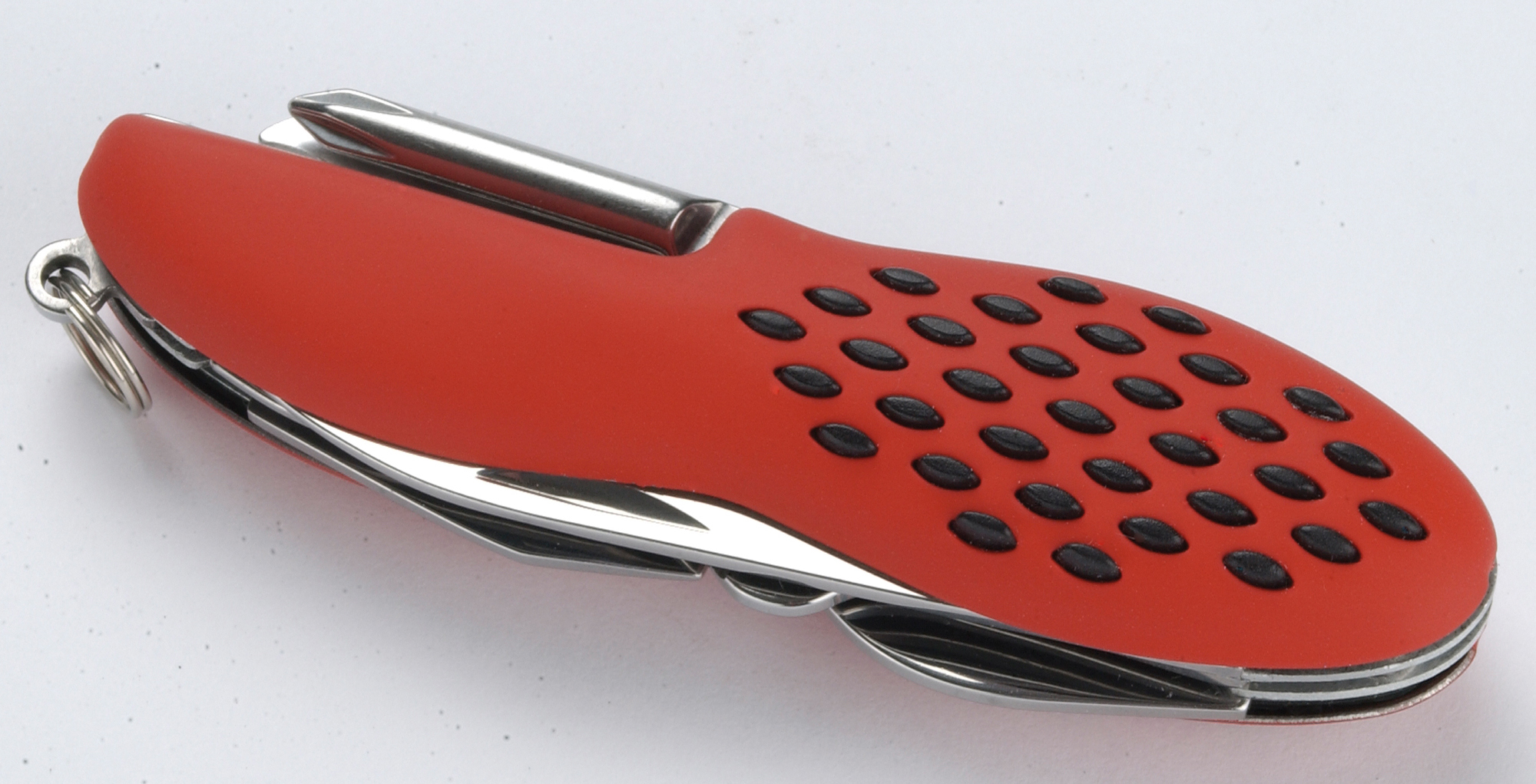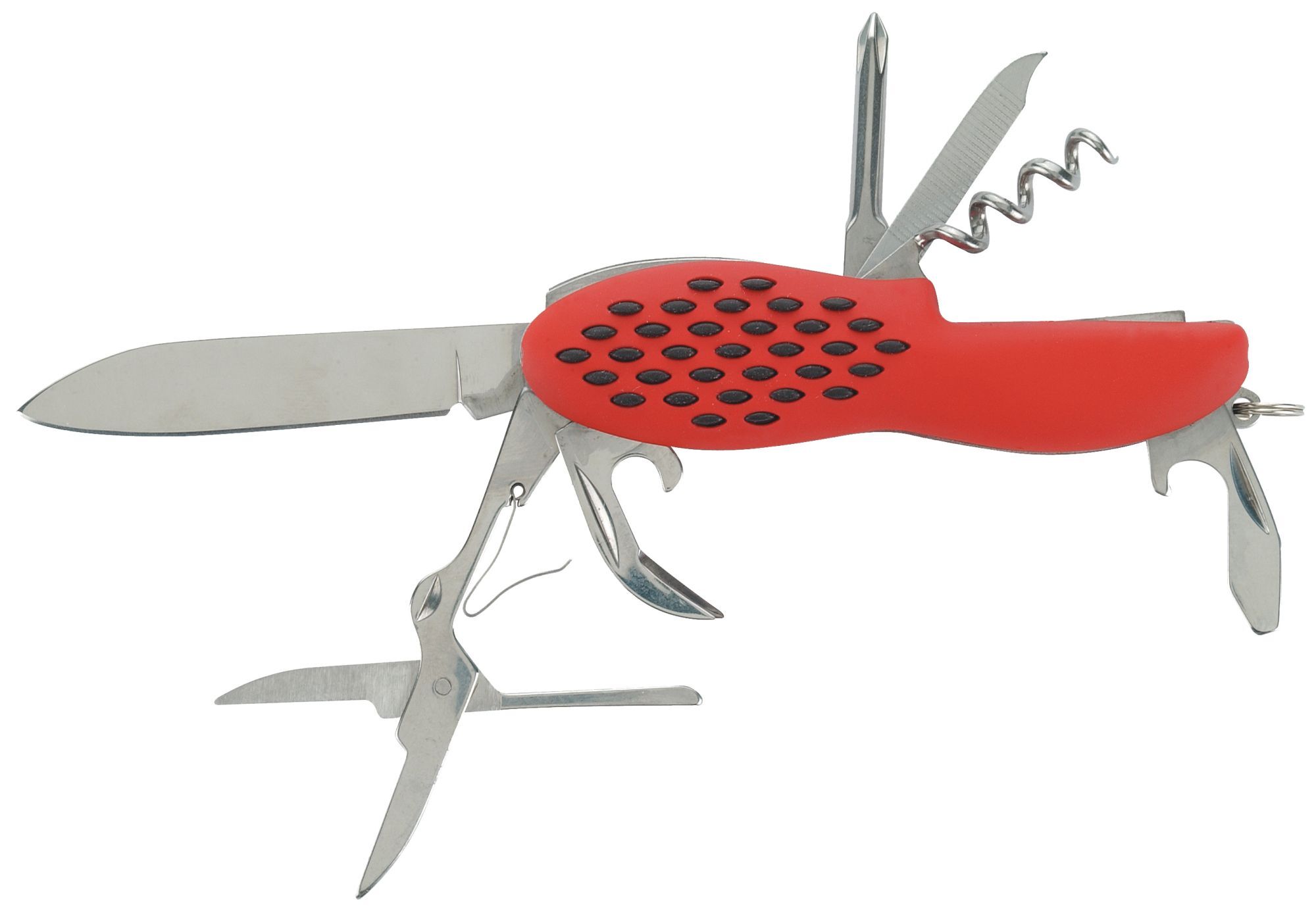 Pfiffikus-Taschenmesser mit 10 Funktionen und angenehmen Gummigriff mit Gürteltasche. Ab 8 Jahren.