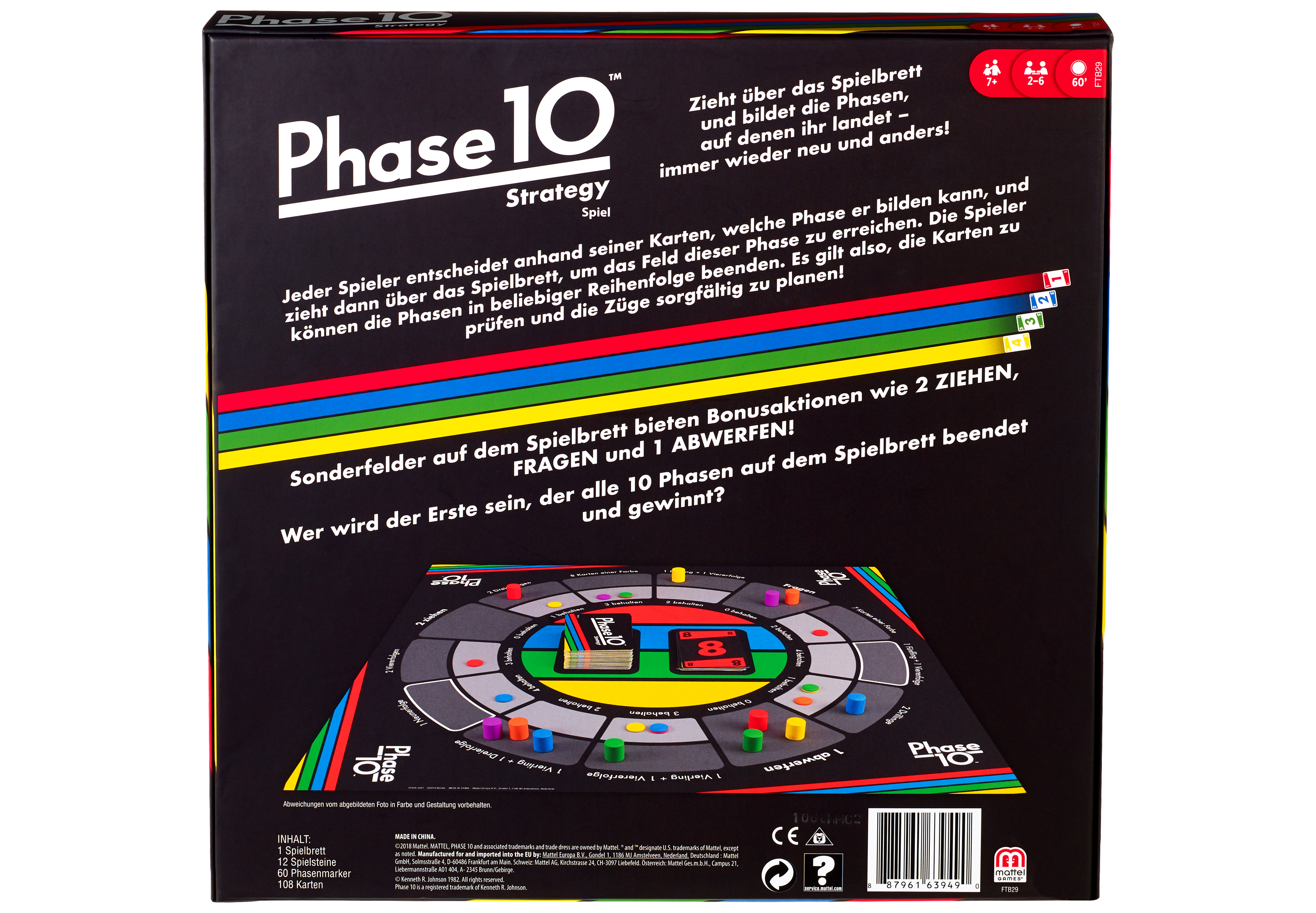 Mattel FTB29 Phase 10 Brettspiel Beim Ziehen über das Spielbrett bildet man die Phasen der Felder, auf denen man landet - jedes Spiel ist anders! Phase 10 Strategy wird über mehrere Runden gespielt, in denen die Spieler reihum ihre Spielsteine so über das Spie...