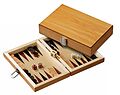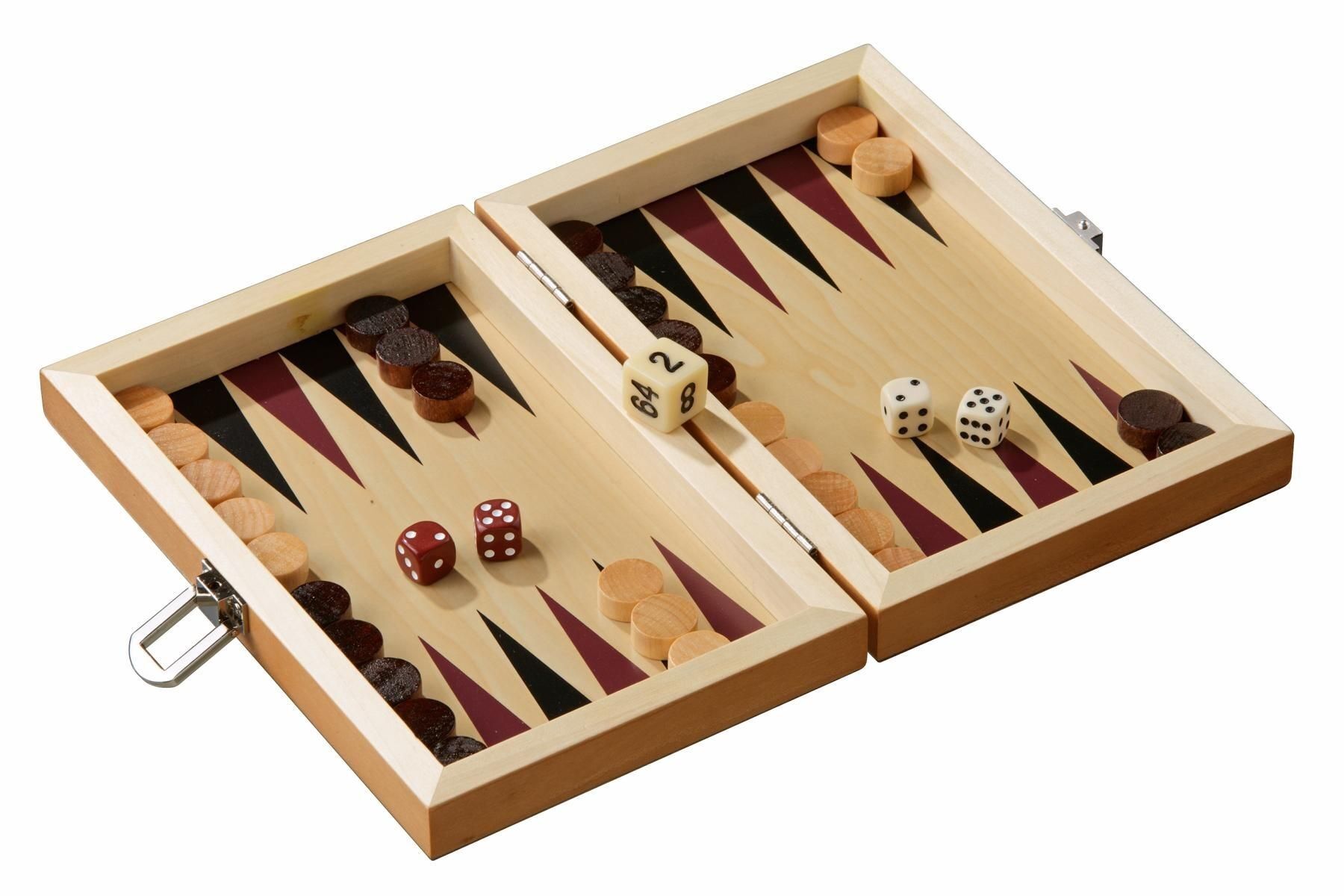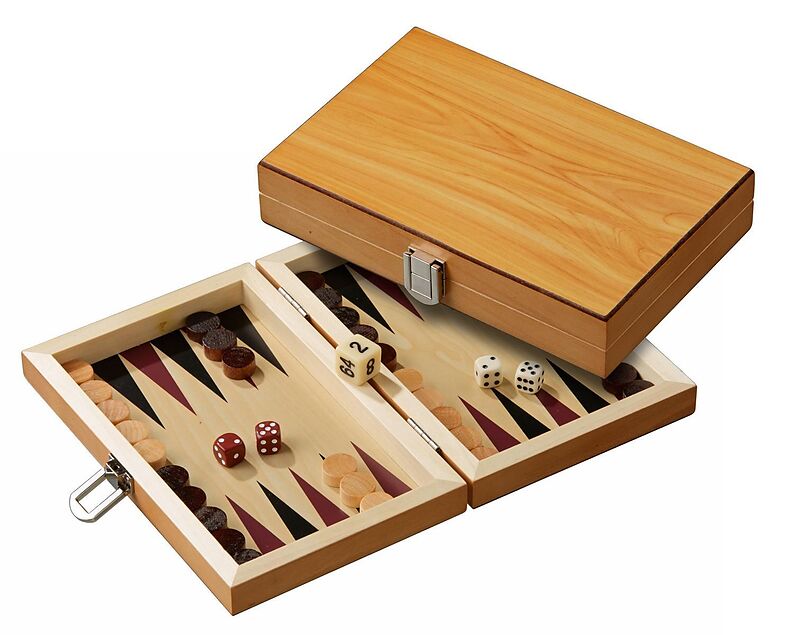 Inhalt: 1 Dopplerwürfel, 1 Kassette, 4 Würfel, 15 dunkle Spielsteine, 15 helle Spielsteine, Stoffbeutel für Spielsteine