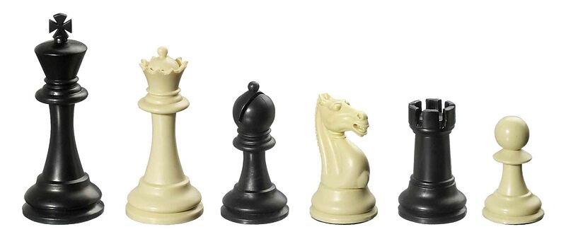 Design: Staunton, Königshöhe 95 mm, Kunststoff, schwarz/cremefarben, gewichtet. Design: Staunton, Königshöhe 95 mm.Kunststoff, Filzsockel, im Polybeutel.