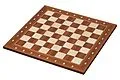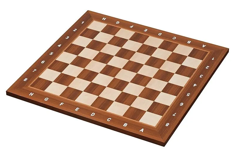 Schachbrett London mit Randbeschriftung aus Mahagoni und Bergahorn, Zierader, Intarsien, matt versiegelt, Gummifüße.