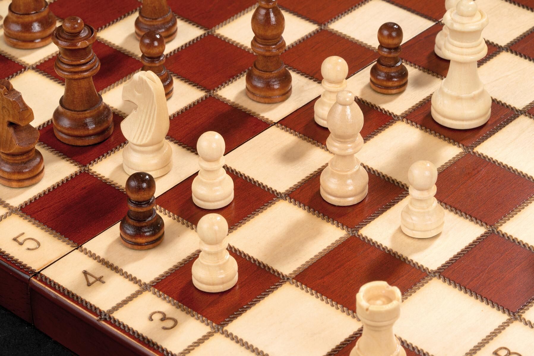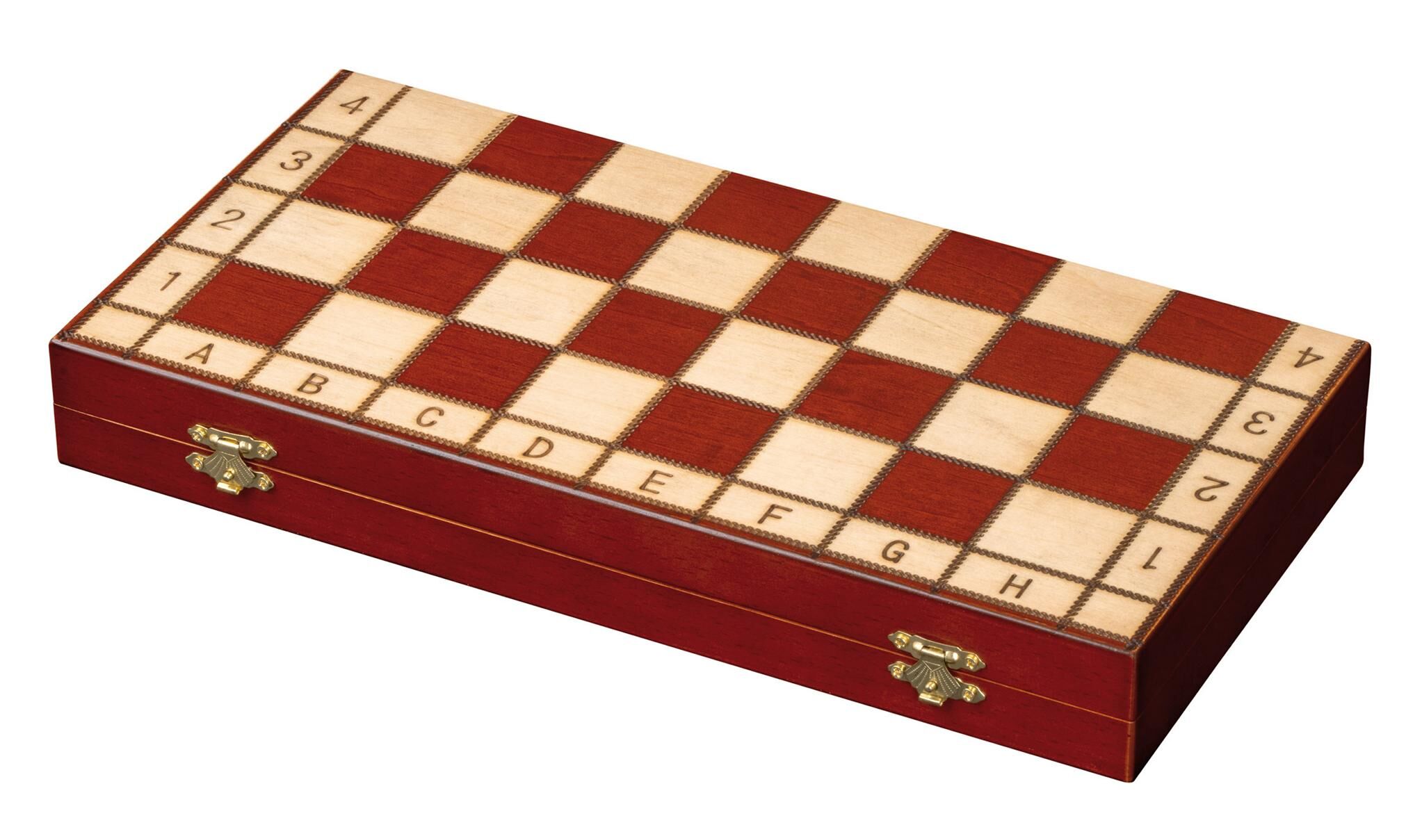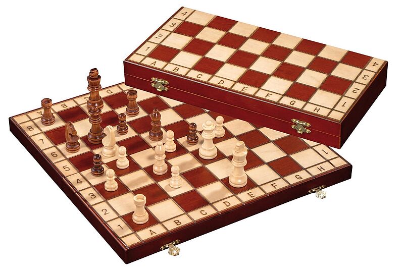 Schach ist ein spannendes Strategiespiel für zwei Personen. Es hat einfach Regeln und ist trotzdem vielseitig und anspruchsvoll. - Spielfeld: Material: Linde mit Holzfurnier und Siebdruck , Maße: 346 x 344 x 22 mm (im offenen Zustand) - Feldgröße: 35 mm - Figu...