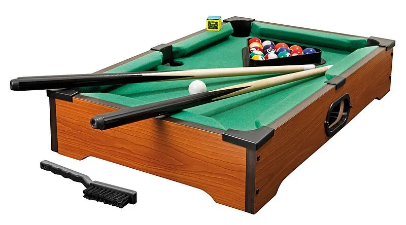 Das unterhaltsame Spielvergnügen für Zuhause, fürs Büro oder auf Reisen. Das Spiel auf den Tisch stellen und Los gehts. Spannung und Spaß garantiert. Wandmaterial: MDF Maße Billiardtisch 510 x 320 x 95 mm. Billardkugeln: 15 bunte, 1 weiße, 2 Queues, 1 Billardk...