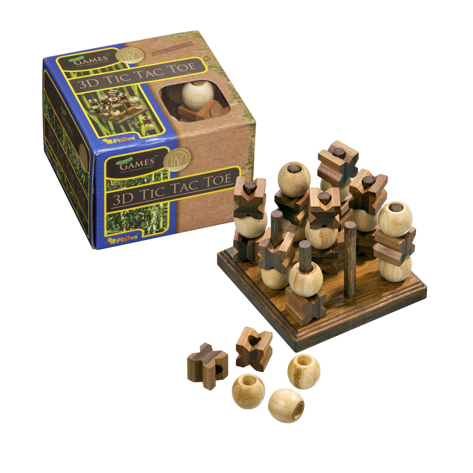 Strategiespiel für 2 Personen. Drei eigene Spielsteine müssen in eine horizontale, vertikale oder diagonale Reihe gelegt werden. Maße 105 x 105 x 75 mm. Altersempfehlung: ab 6 Jahren, Spieldauer: ca. 10 Minuten