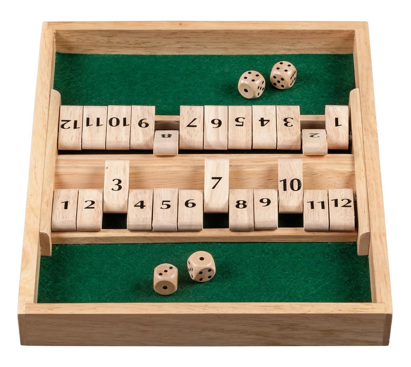 Shut the Box ist ein einfaches, aber sehr spannendes Würfelspiel für beliebig viele Personen. Dabei werden nach jedem Wurf mit den Würfeln entsprechend der angezeigten Augenzahl eine oder mehrere Zahlen umgeklappt. Ziel des Spiels ist es, alle schwenkbaren Zah...