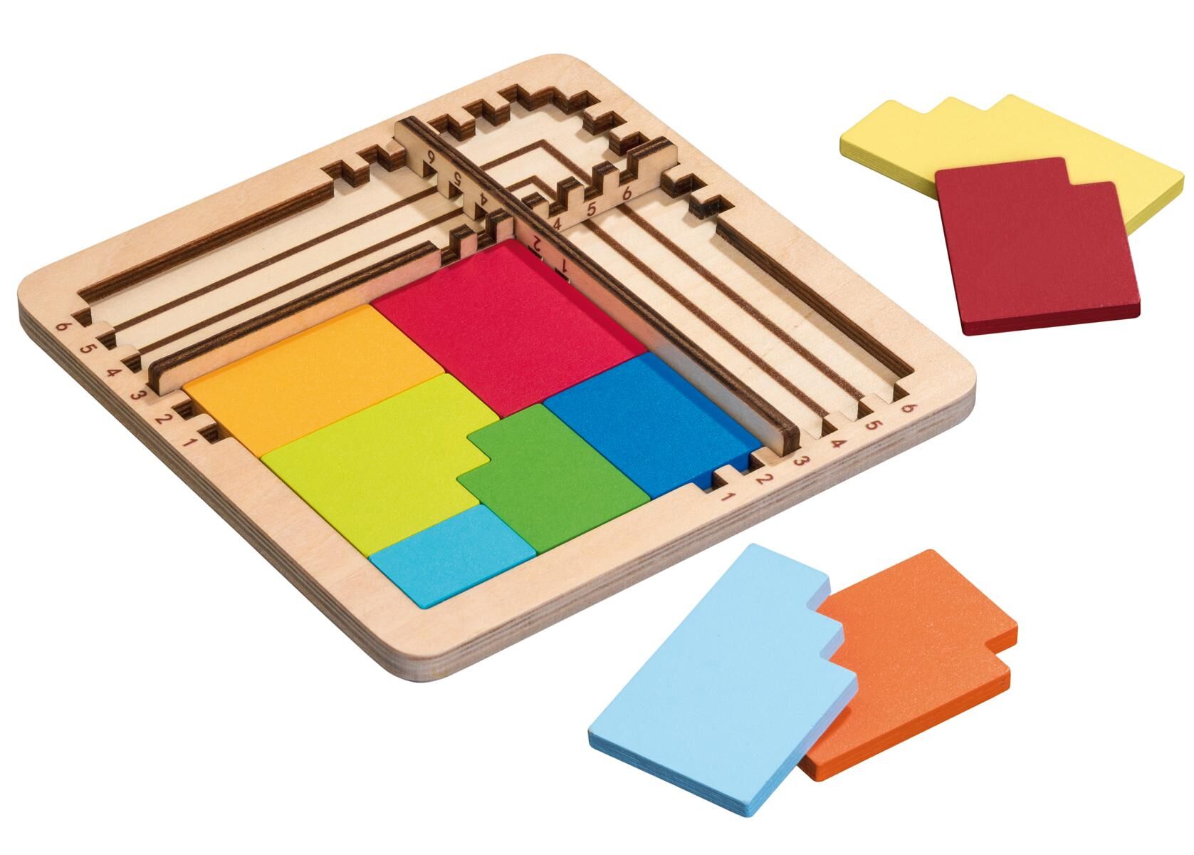 Dieses knifflige Legepuzzle besteht aus 10 verschiedenen bunten Teilen die in einen Rahmen gelegt werden müssen. Die Besonderheit hierbei besteht darin, dass durch die zwei enthaltenen Schienen die Anzahl der benötigten Puzzleteile Schritt für Schritt erhöht w...