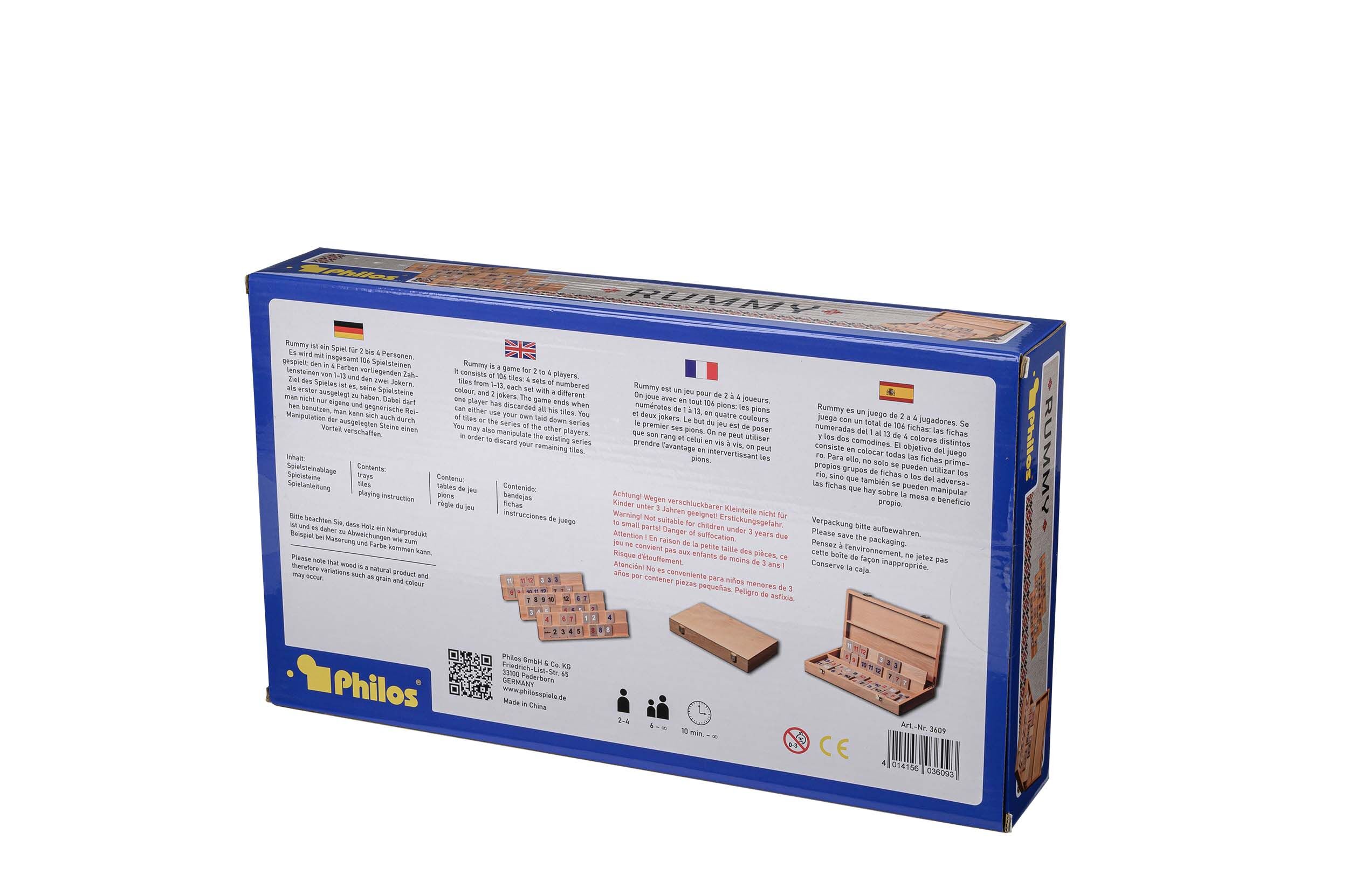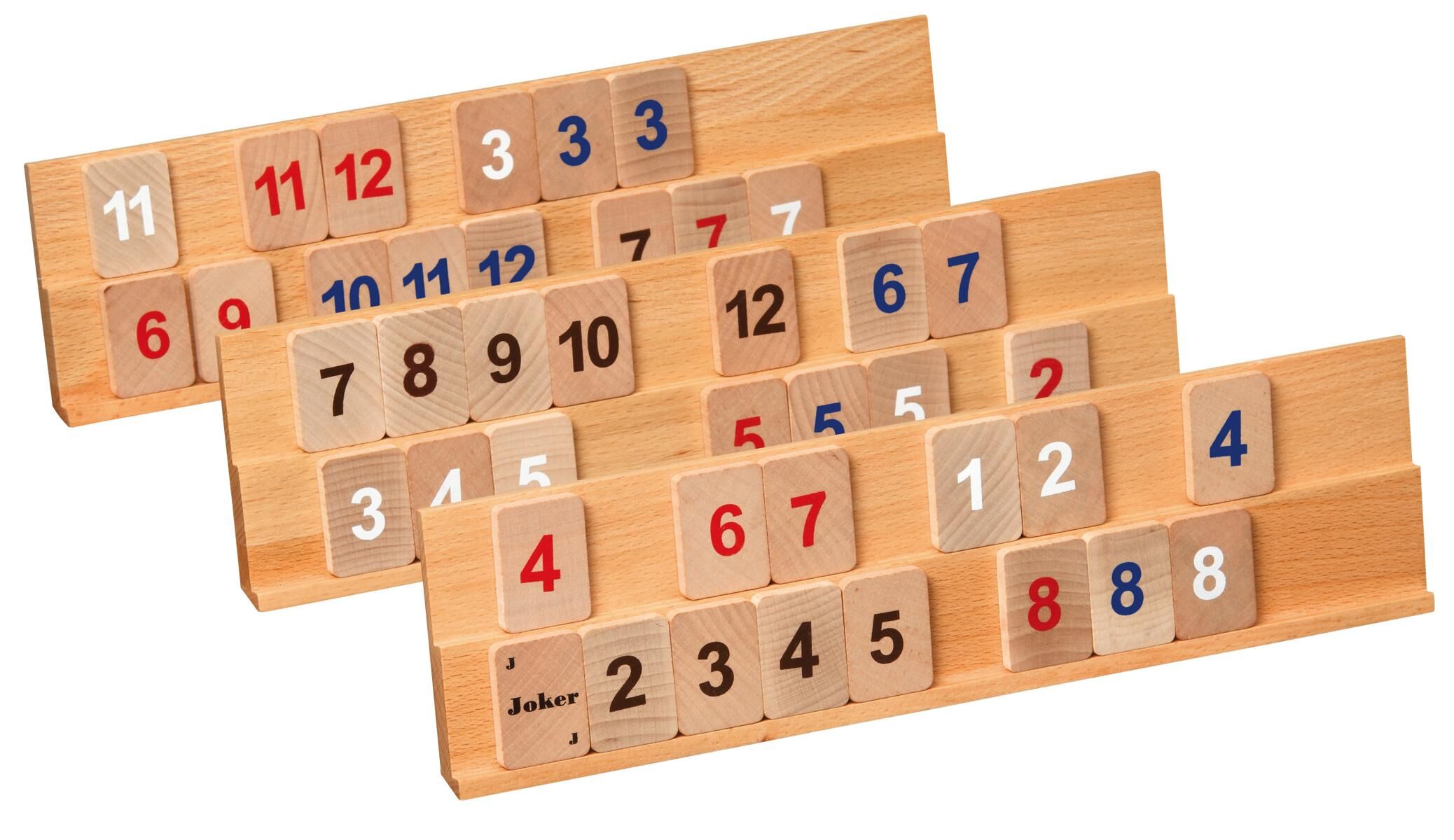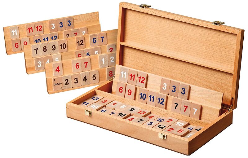Rummy ist ein Spiel für 2 bis 4 Personen. Es wird mit insgesamt 106 Spielsteinen gespielt: den in 4 Farben vorliegenden Zahlensteinen von 1-13 und den zwei Jokern. Ziel des Spiels ist es, seine Spielsteine als erster ausgelegt zu haben. Dabei darf man nicht nu...