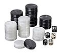 Ein Set hochwertiger Backgammon-Spielsteine aus Kunststoff. In Schwarz und Weiß mit Perleneffekt messen die Steine: 34 x 10 mm und werden mit 4 Würfeln und einem Doppelwürfel geliefert. Inhalt: 1 Dopplerwürfel, 4 Würfel, 30 Backgammon-Steine (15 von jeder Farb...
