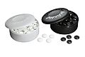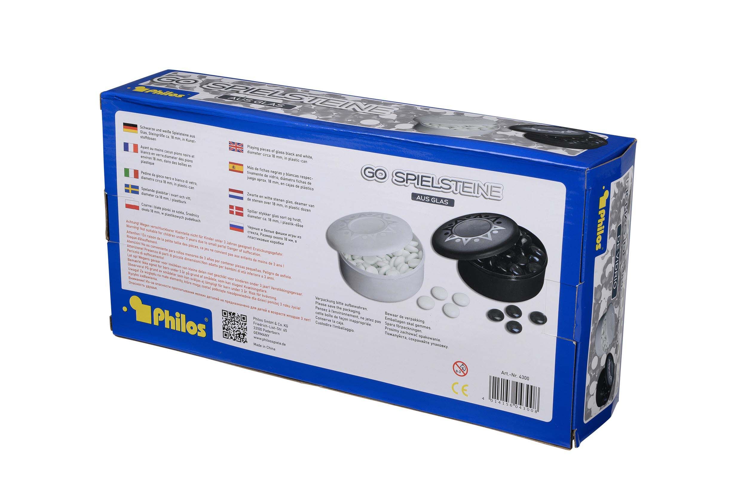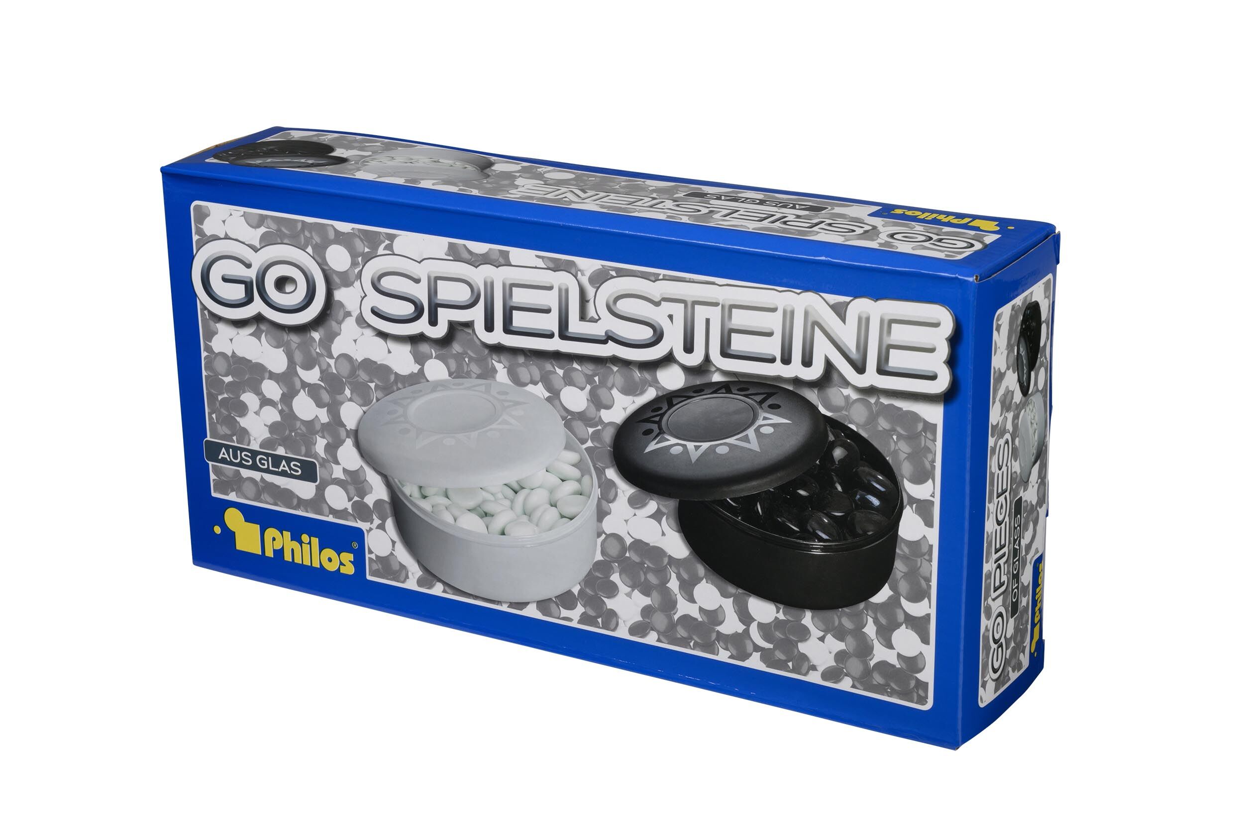 Go-Spielsteine aus Glas, Set schw./weißüber 160 schwarze und über 160 weiße Spielsteine, Steingröße Durchmesser 18 mm, in Kunststoff-Dosen.