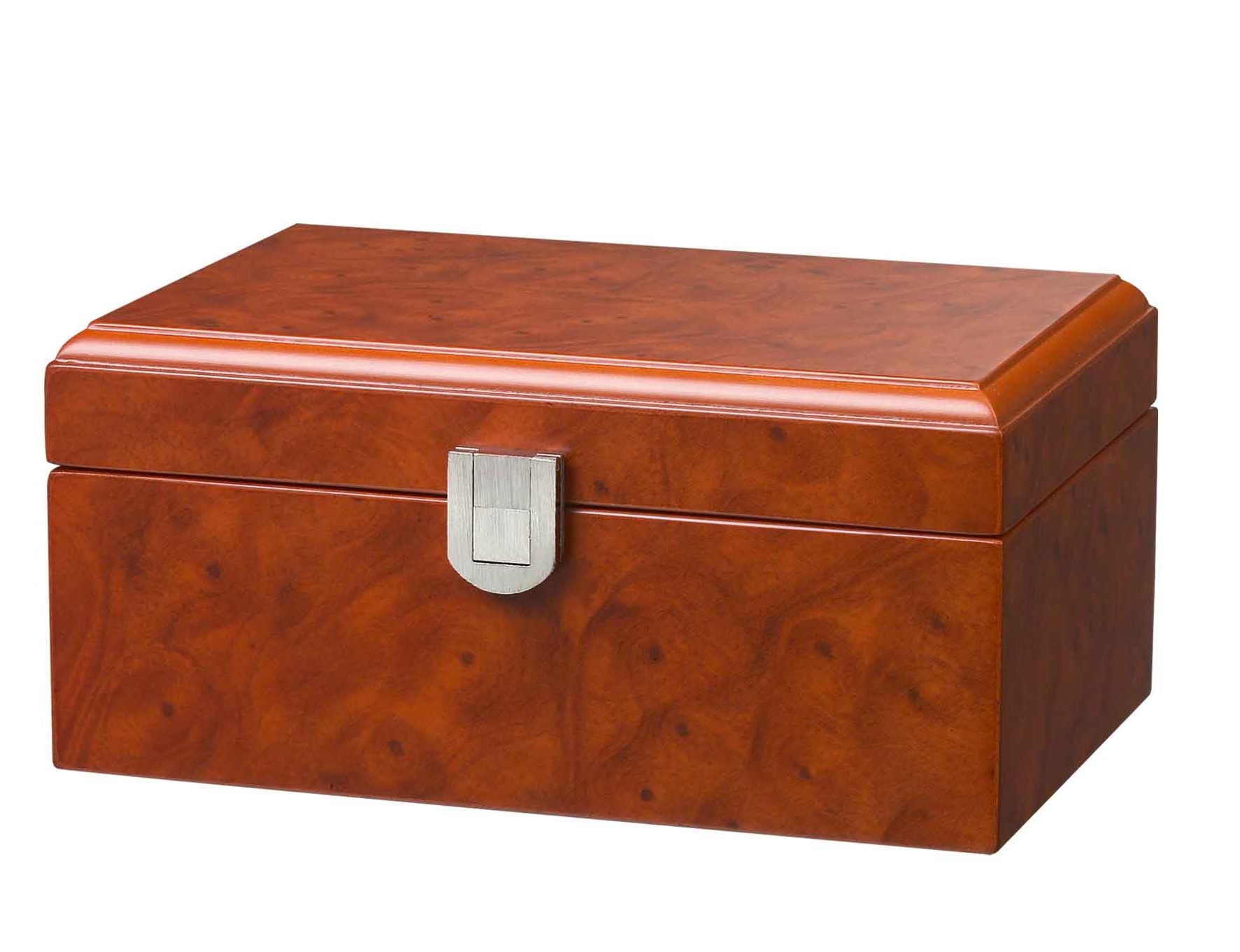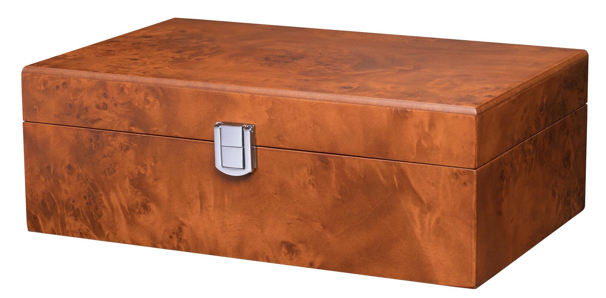 Schachfigurenbox Exklusiv in Wurzelholzdesign, Maße 180 x 120 x 83 mm.