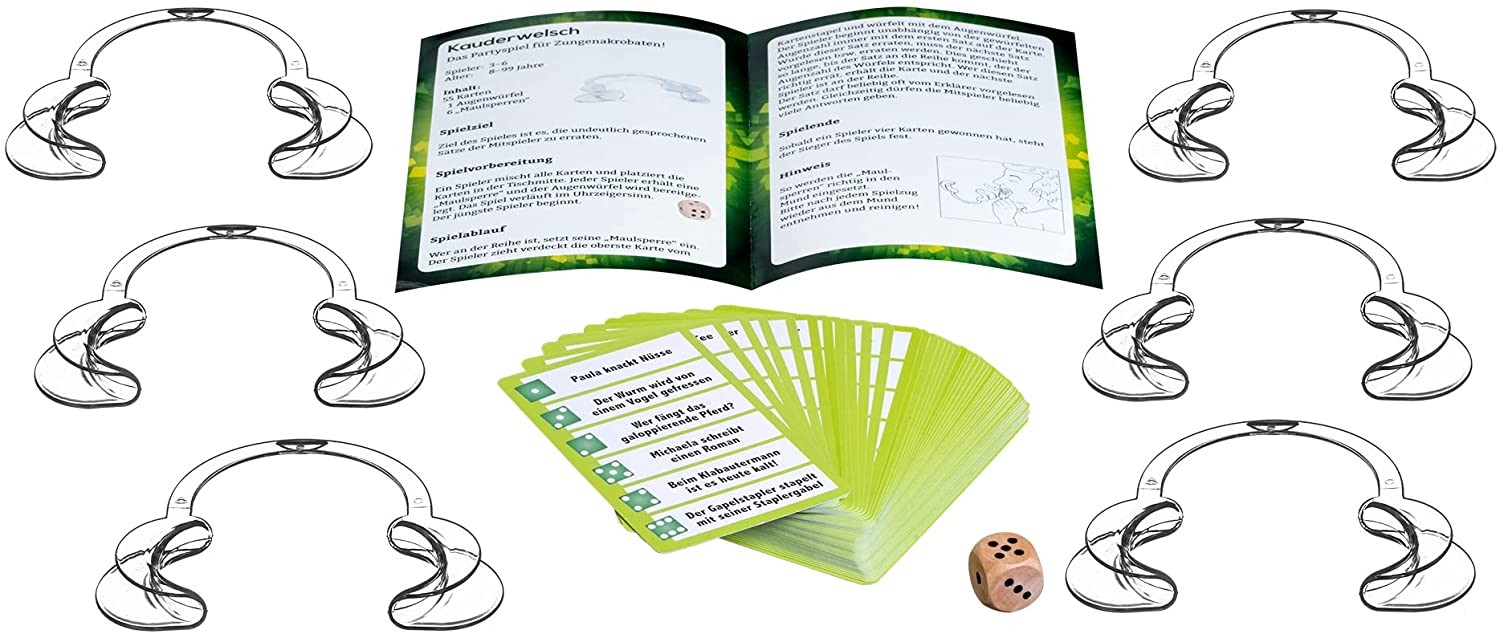 Das Partyspiel für Zungenakrobaten! So ein Kauderwelsch, der Mitspieler erklärt etwas und ich errate es ganz einfach! Wenn da nur nicht diese verflixte Maulsperre wäre, die für eine undeutliche Sprechweise, aber auch für jede Menge Spielspaß und Partylaune sor...